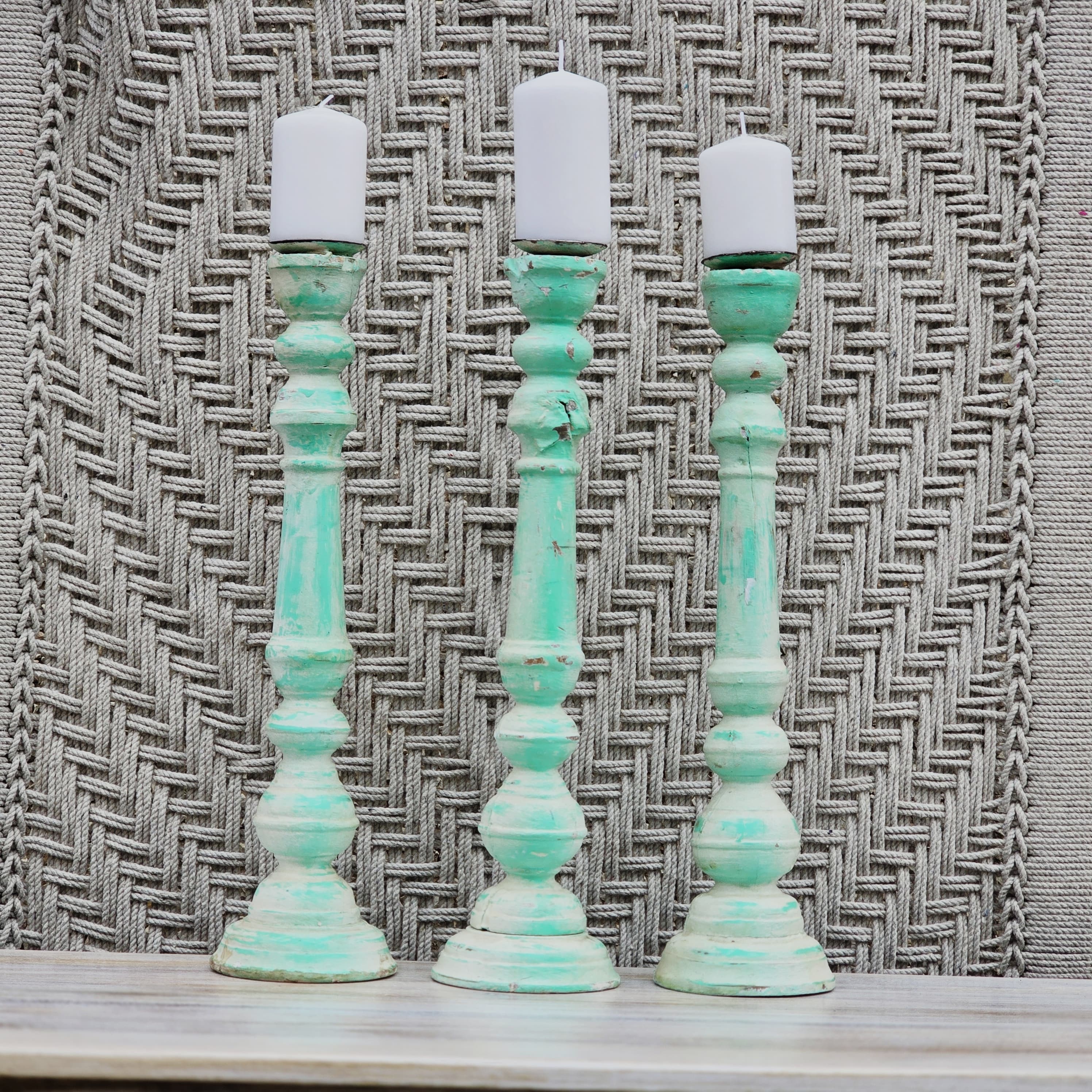 Indian Wooden Hand Carved Candle Holder Stand (Set of 3) 274