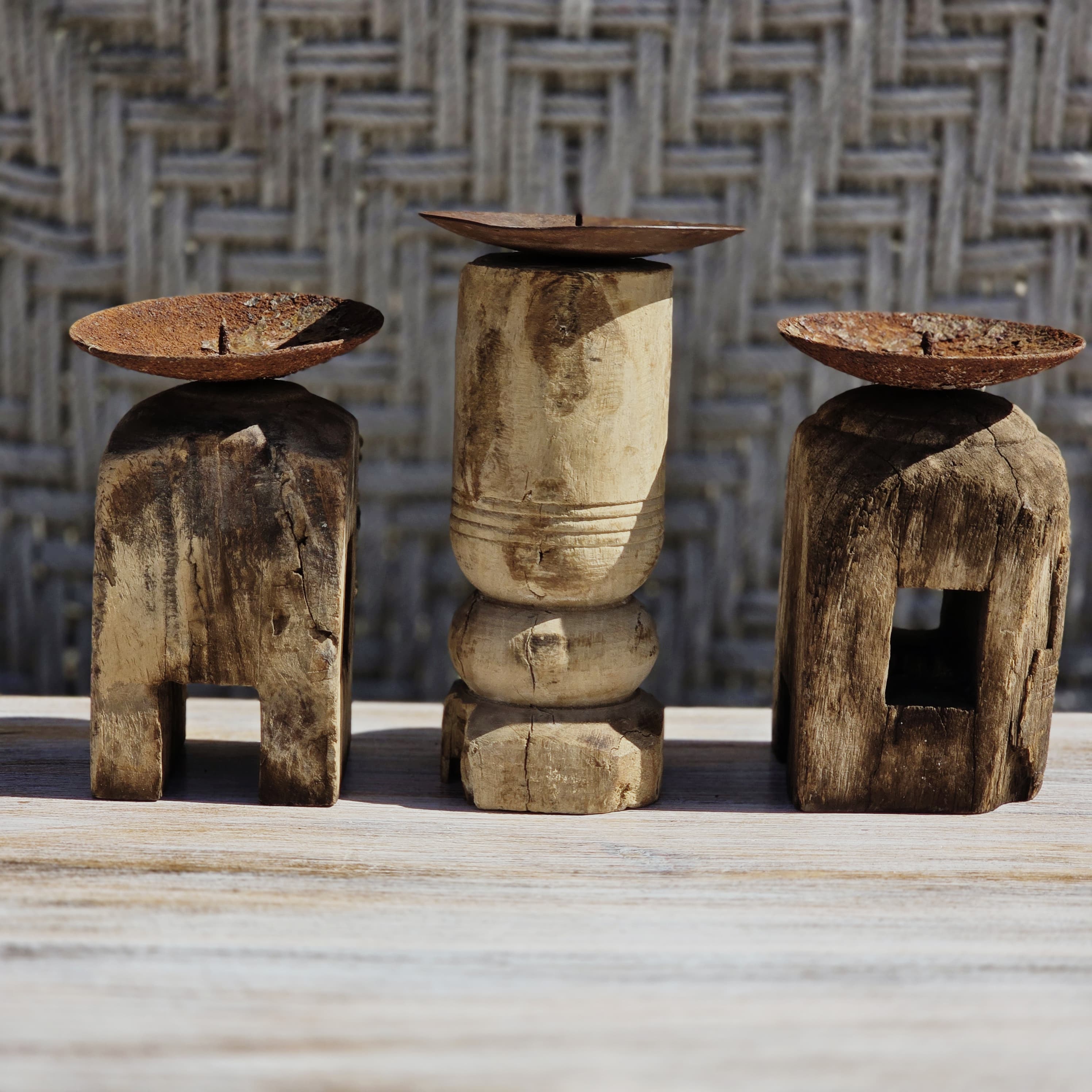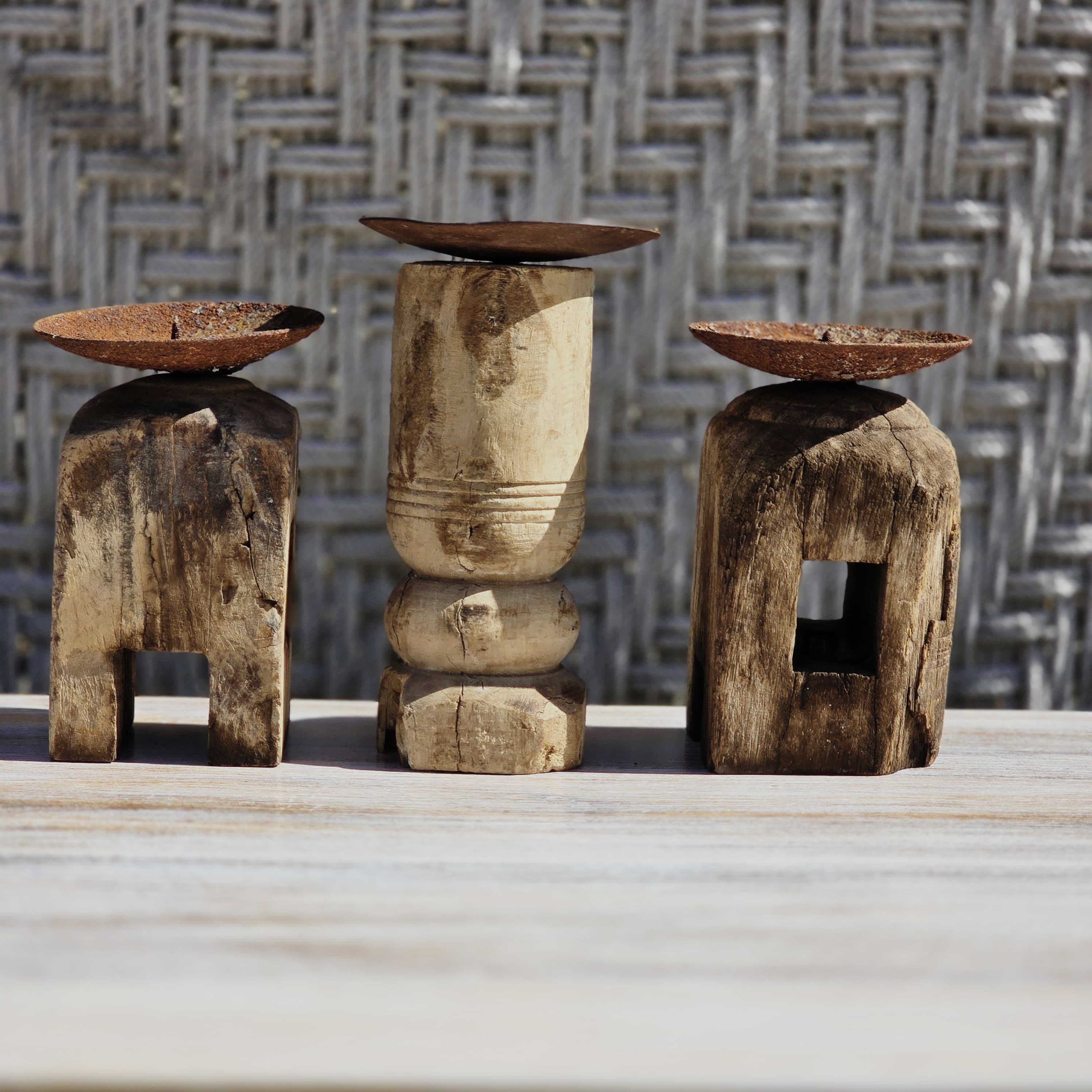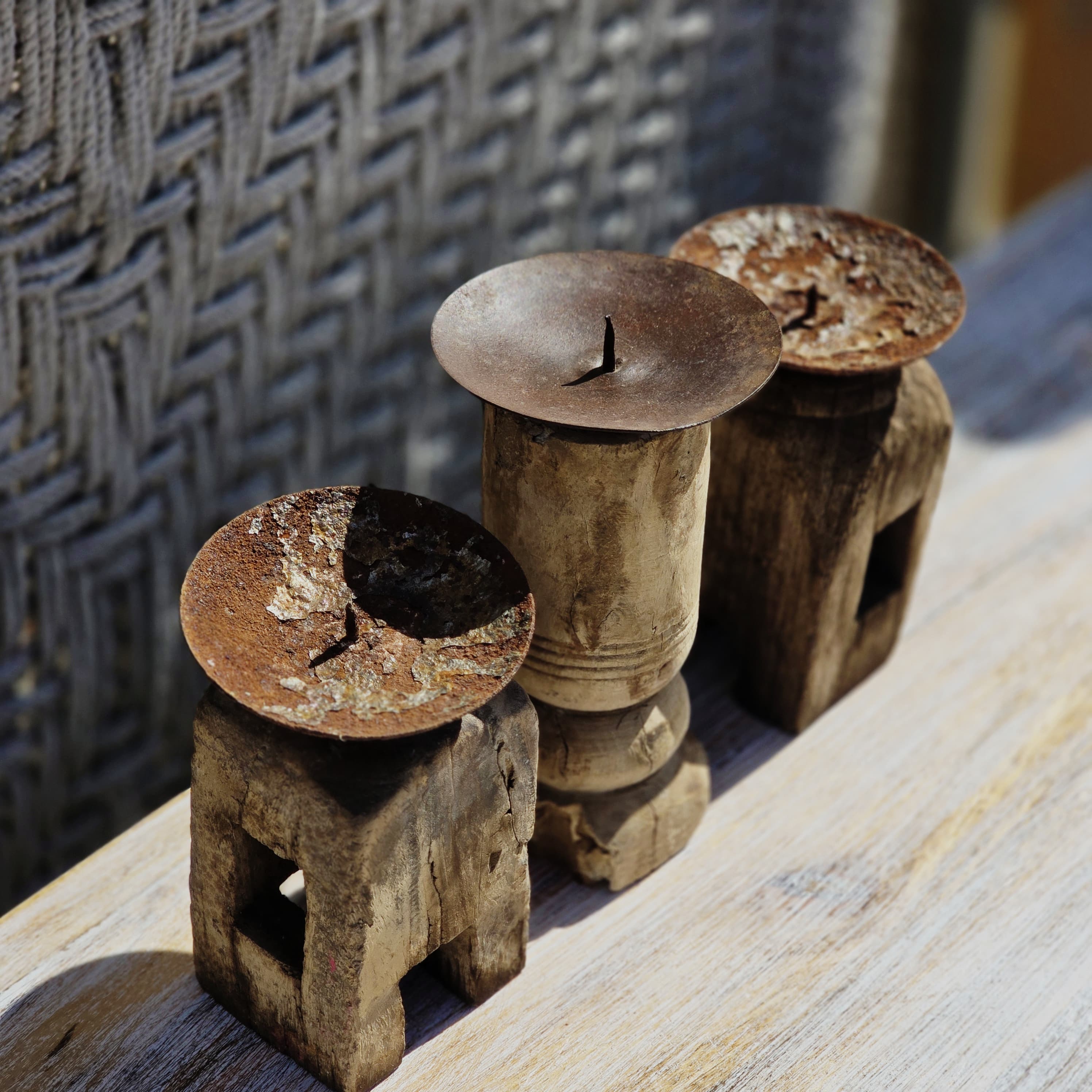 Indian Wooden Hand Carved Candle Holder Stand ( Set of 3) 285