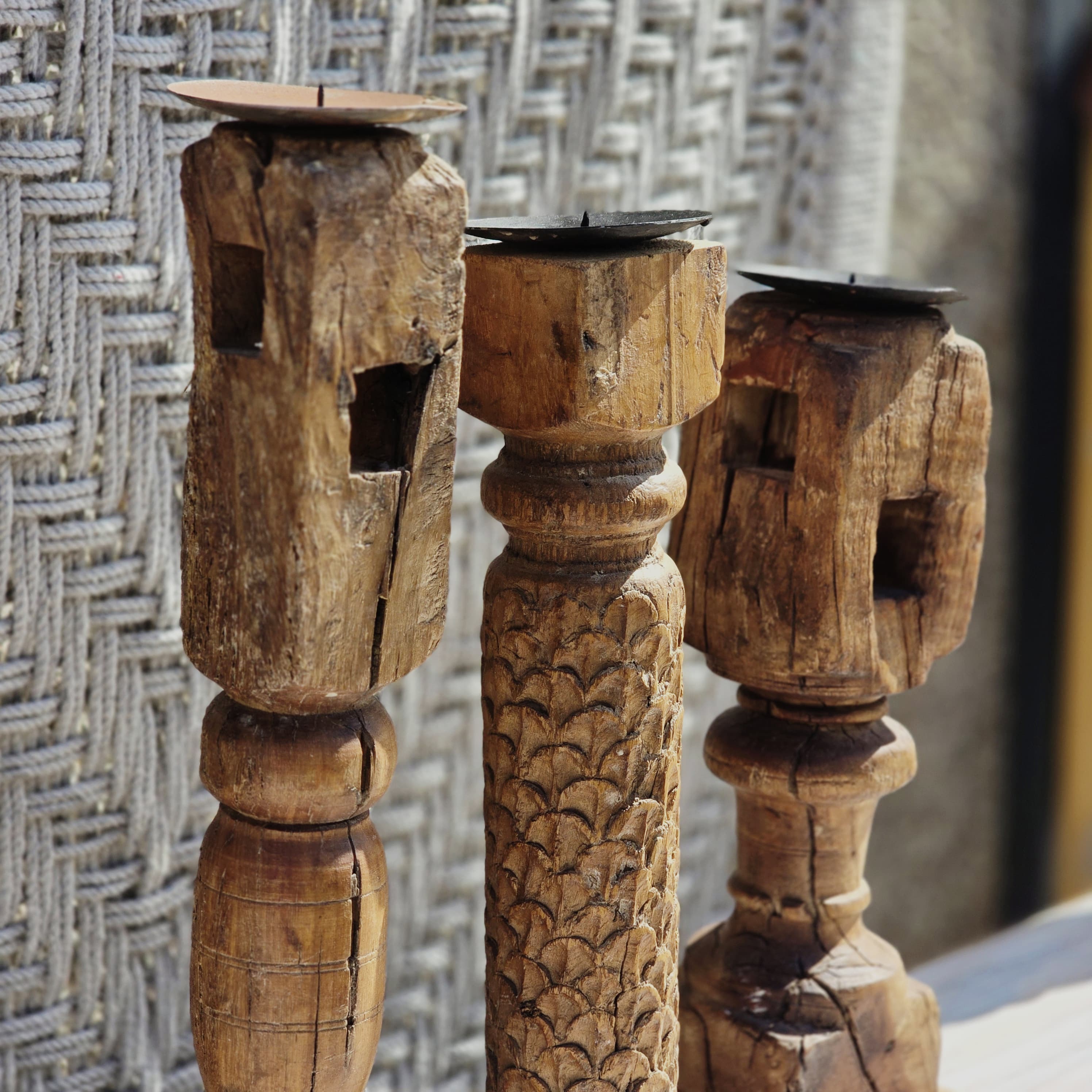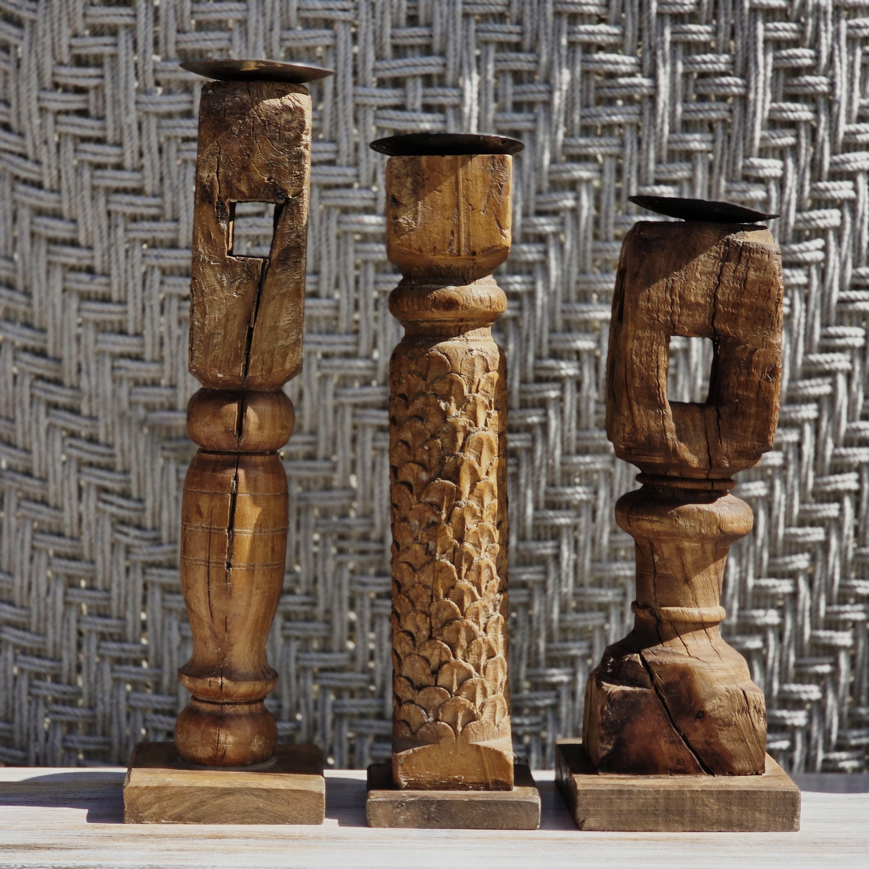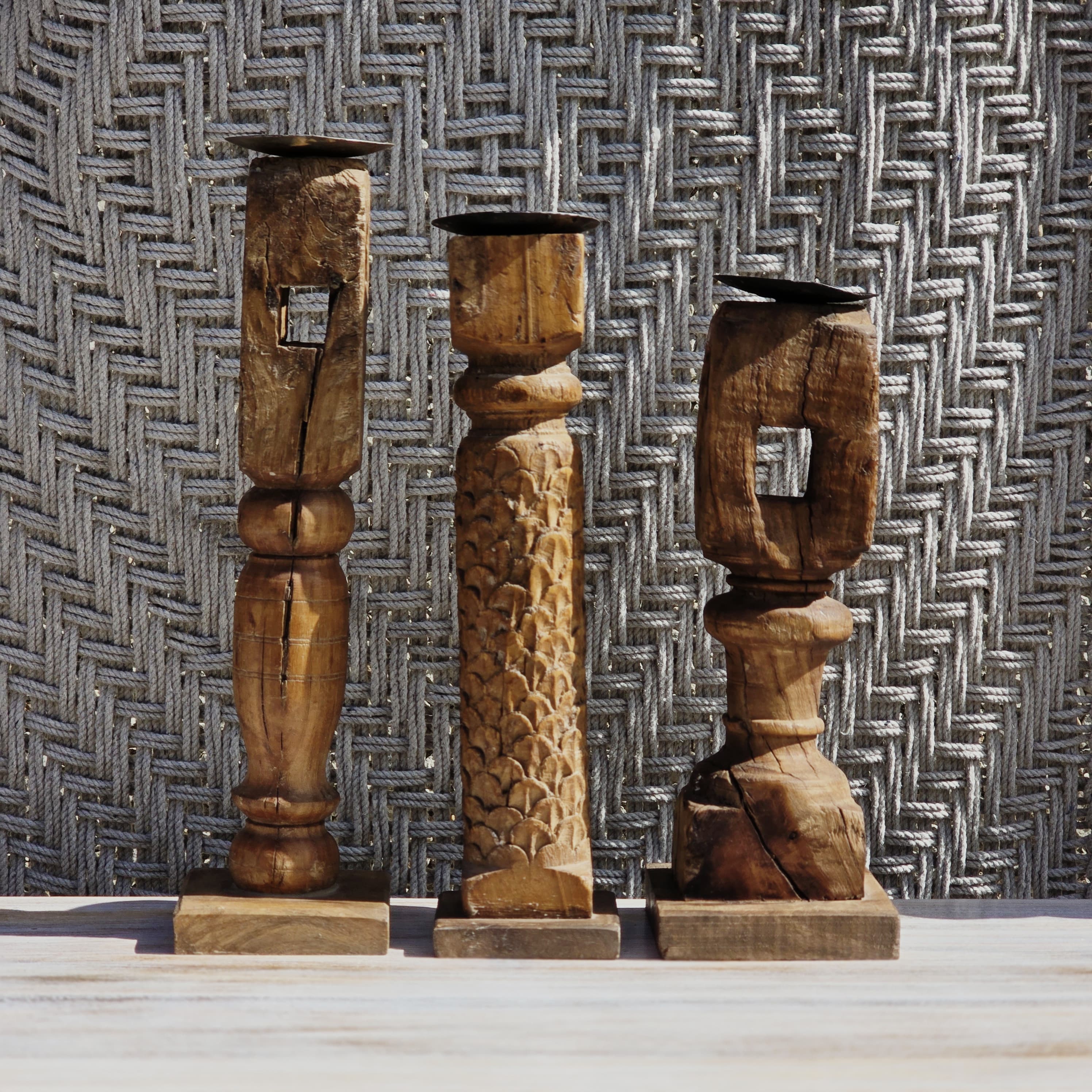 Indian Wooden Hand Carved Candle Holder Stand ( Set of 3) 284