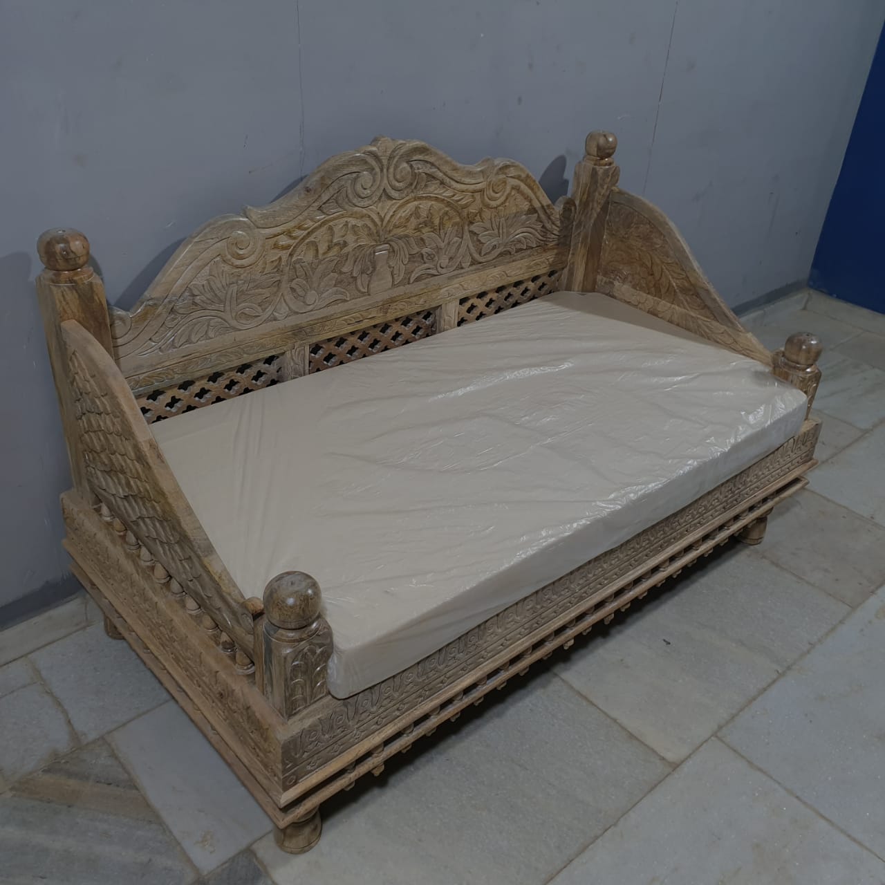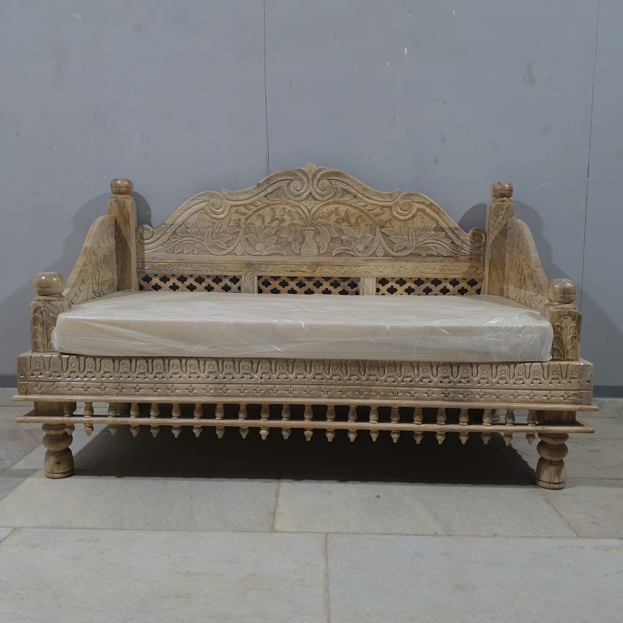 Indian Wooden Handmade Carved Balinese Daybed Sofa D17