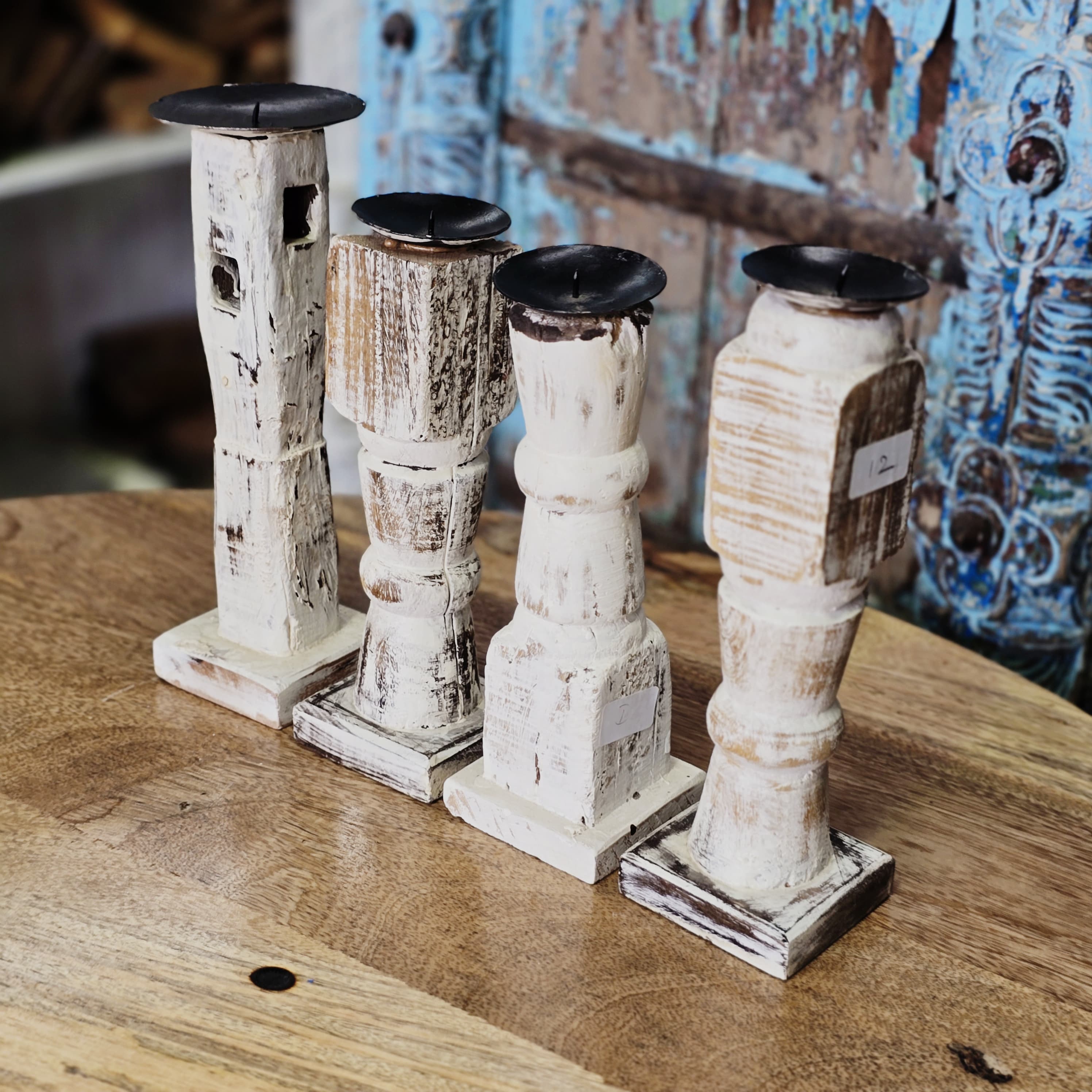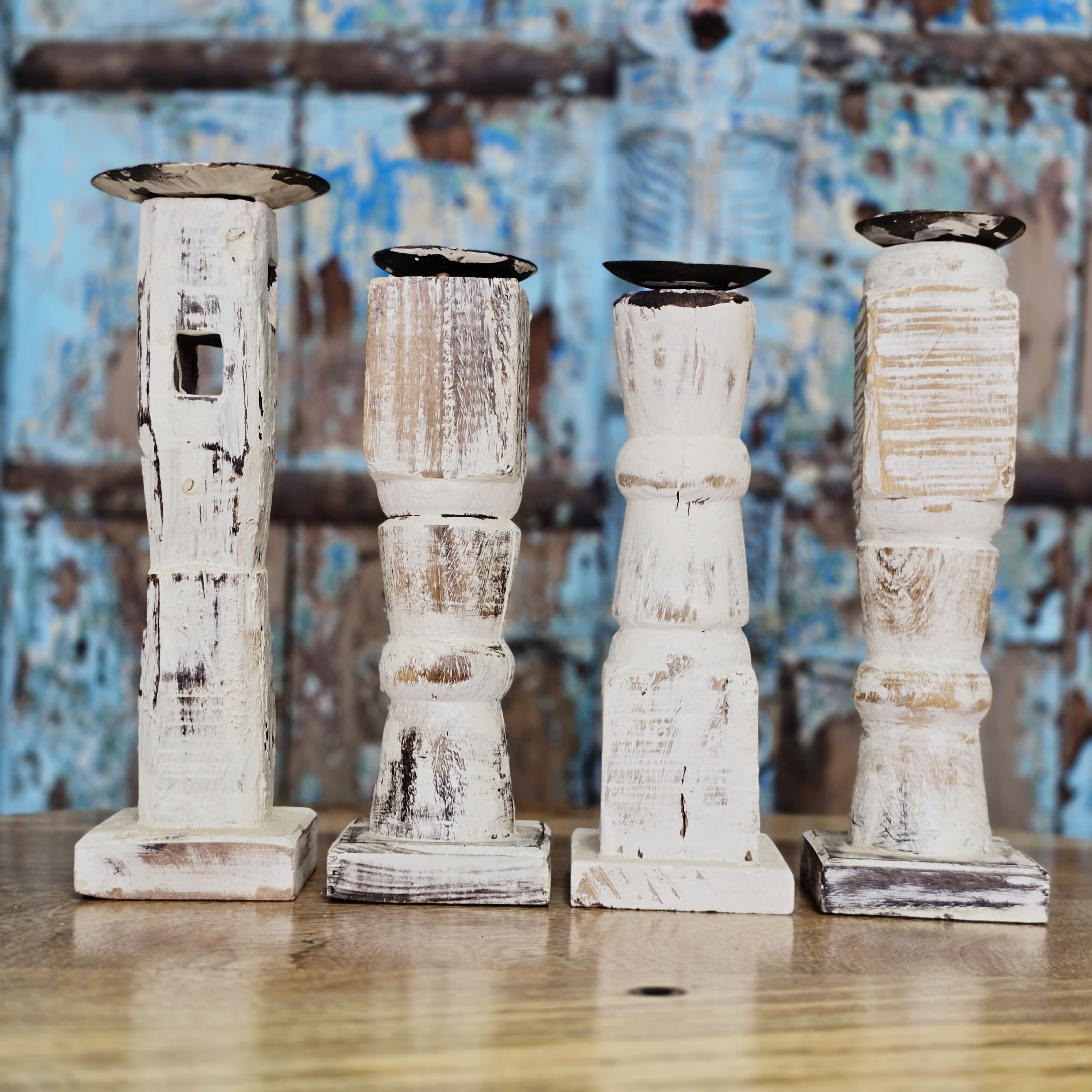 Indian Wooden Vintage Pillar Candle Holder Stand (Set of 4) 111