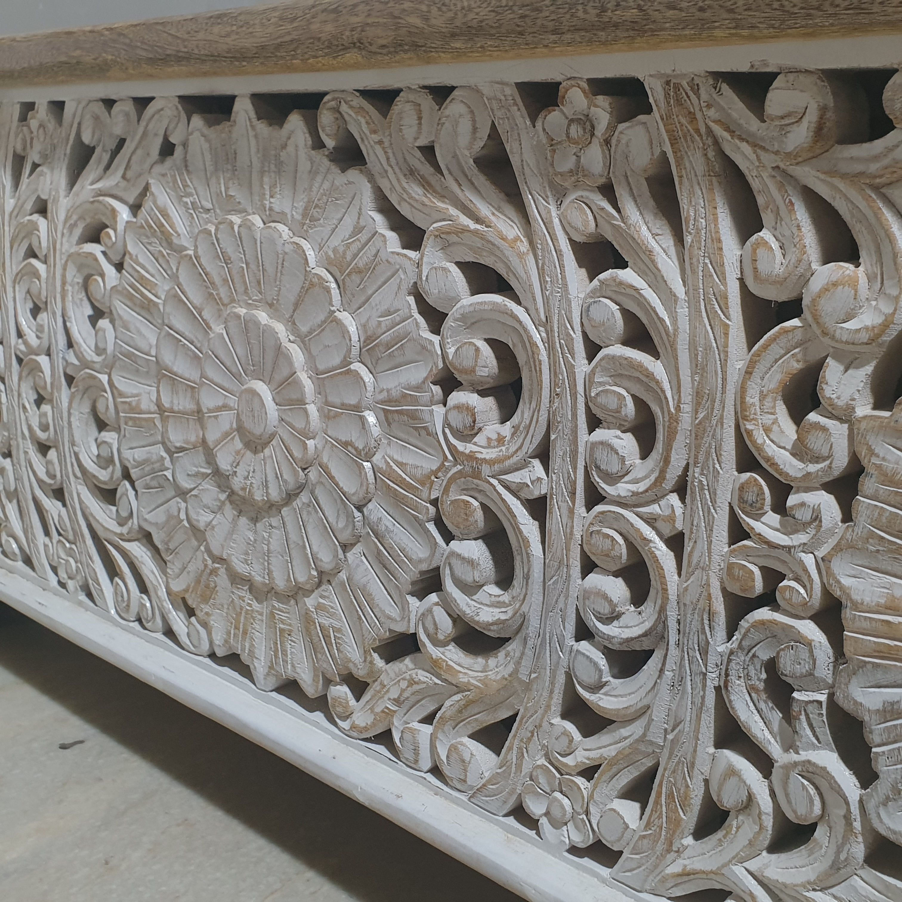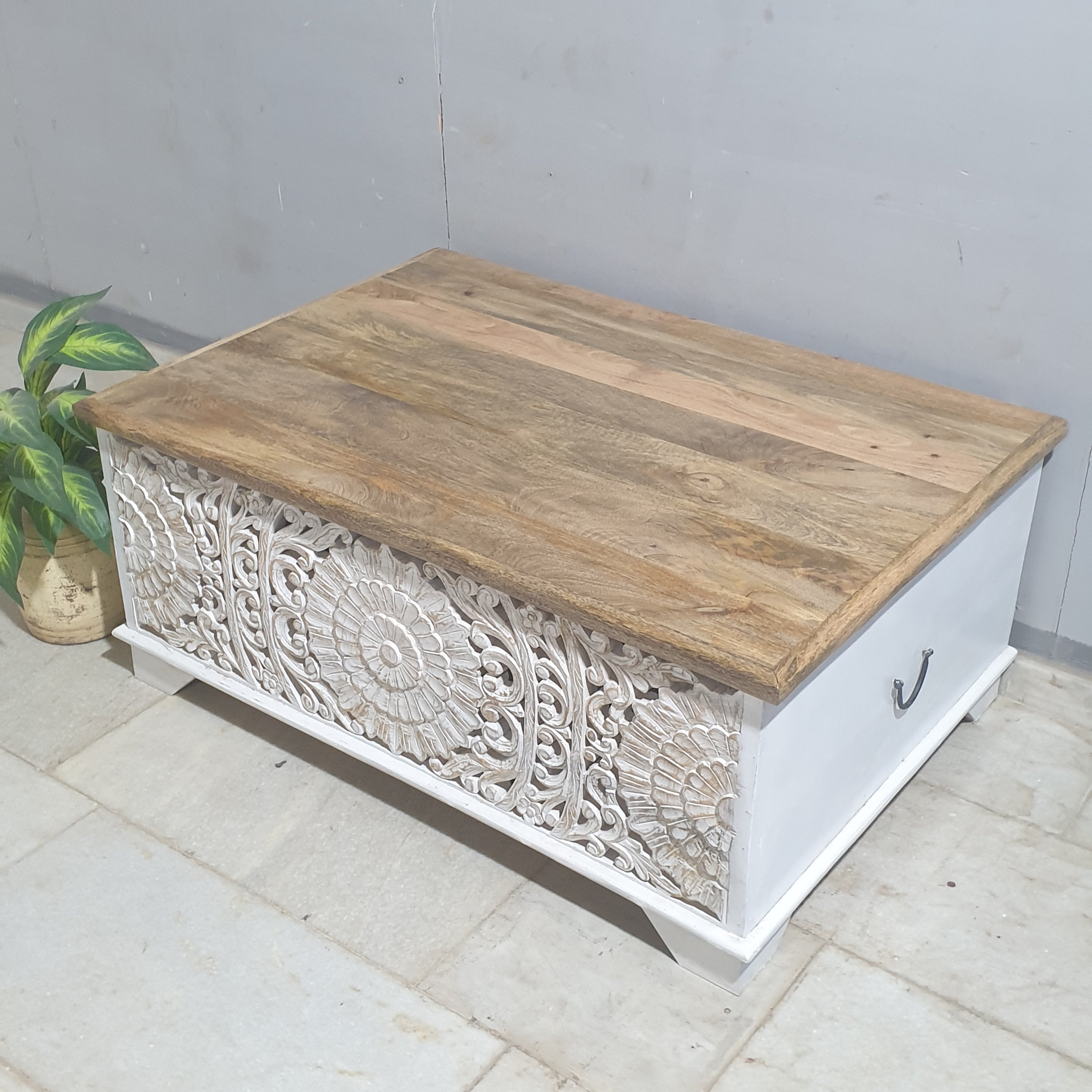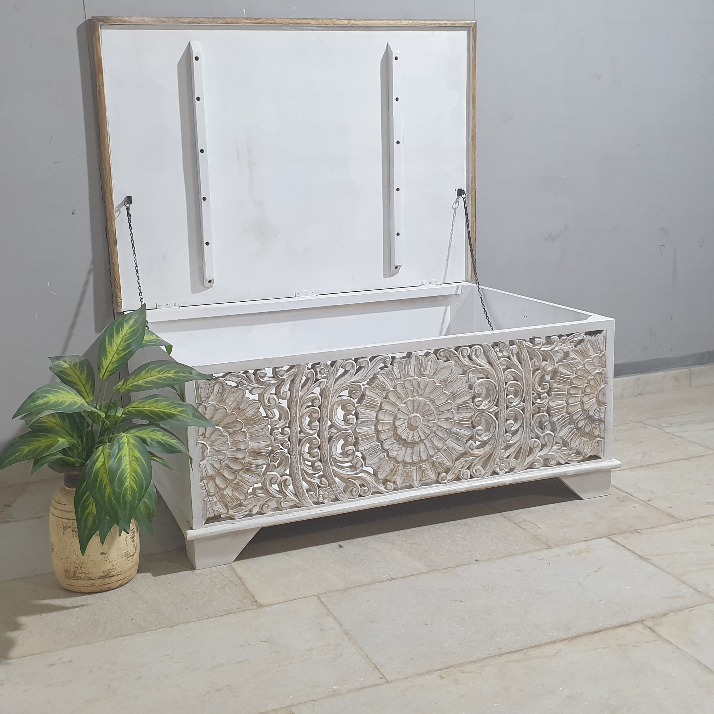 Jali Hand Carved Solid Wood Blanket Box Rustic C24