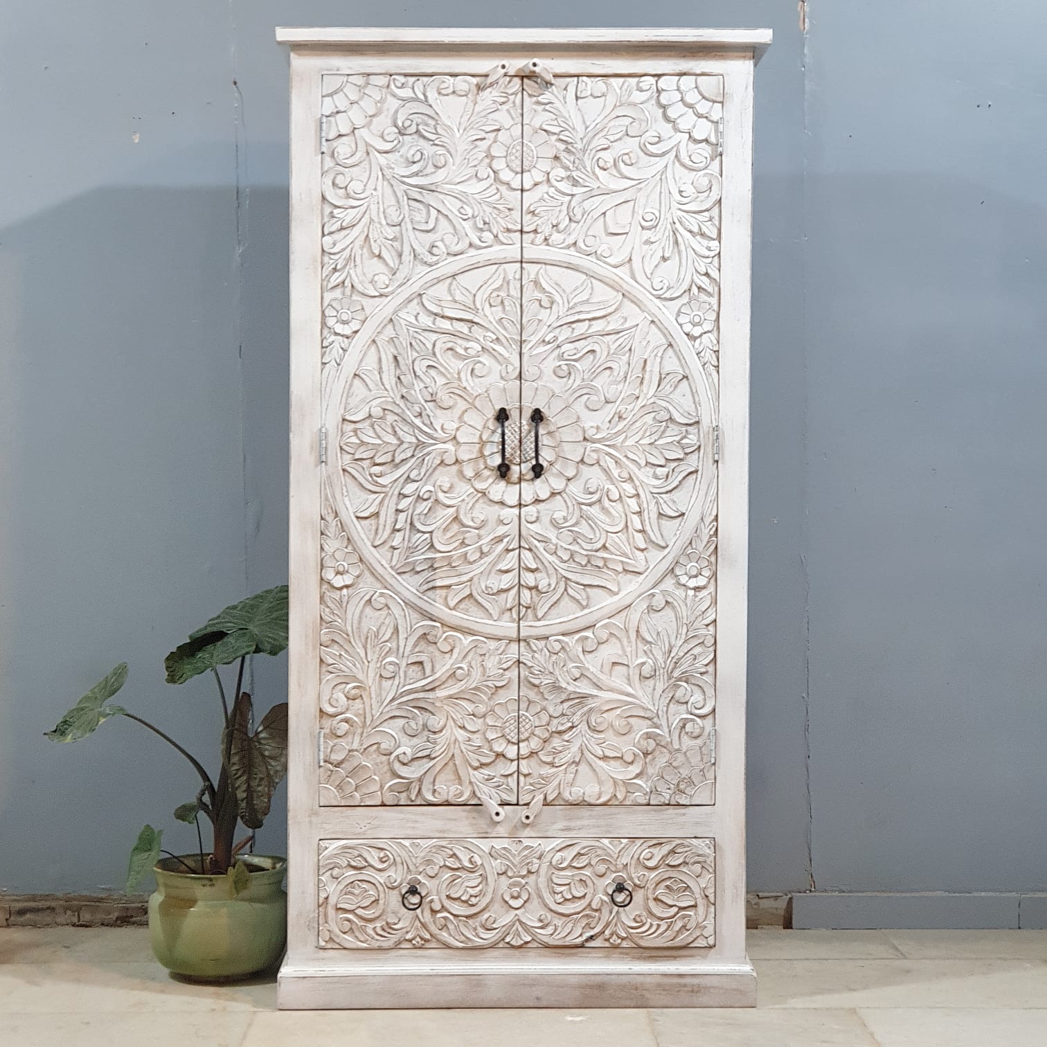 Hand Carved Solid Wood Wardrobe Cabinet 90x40x180 cm