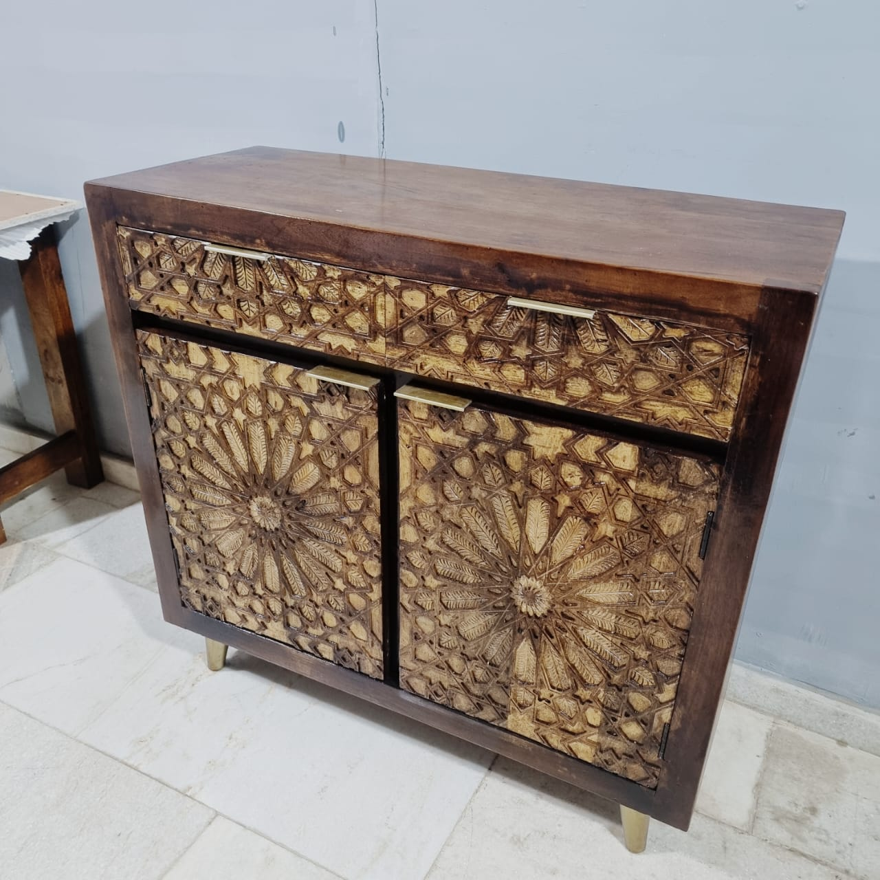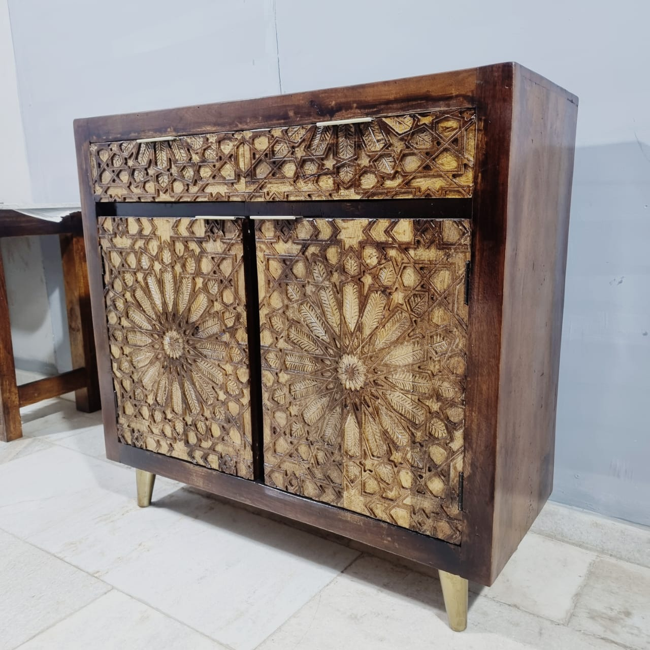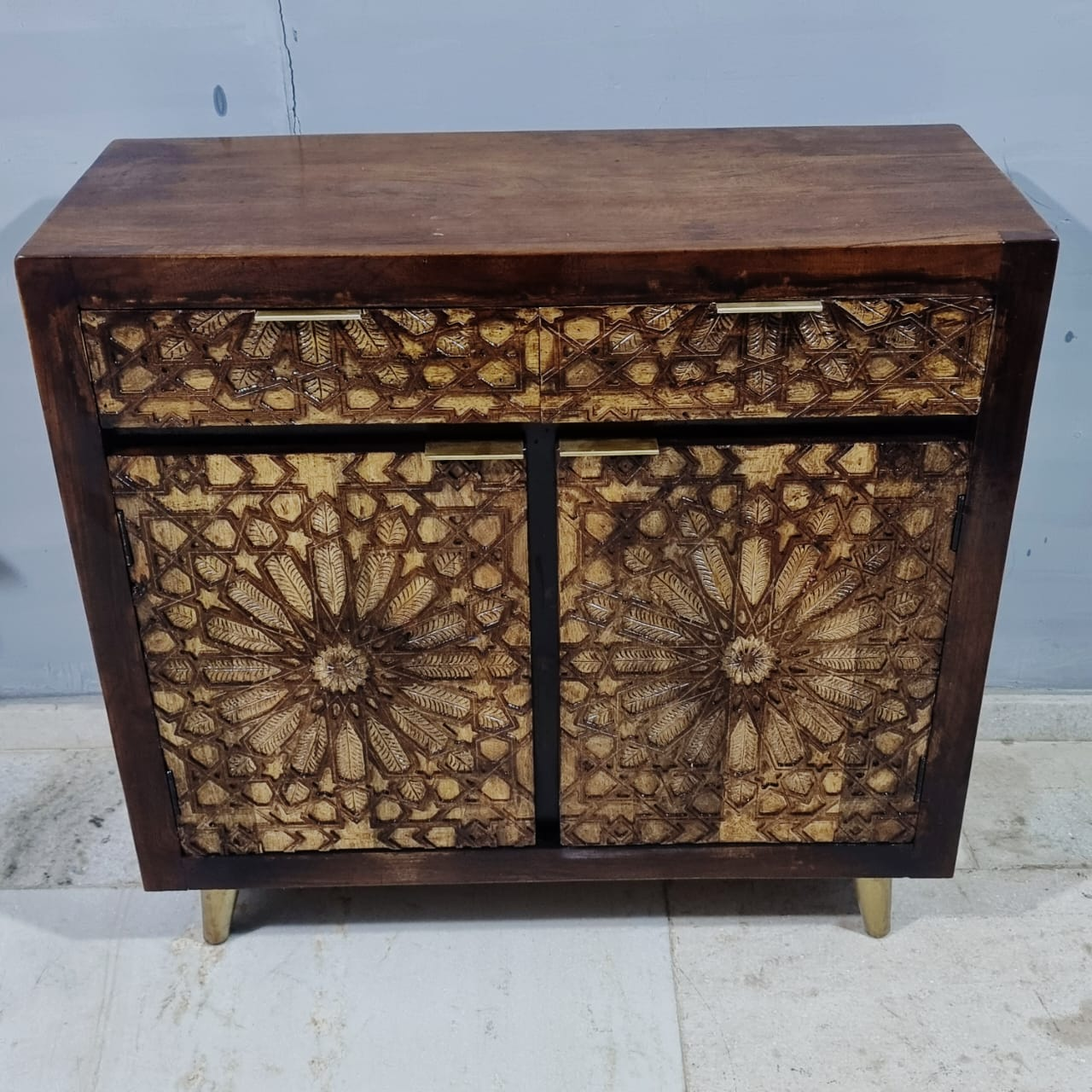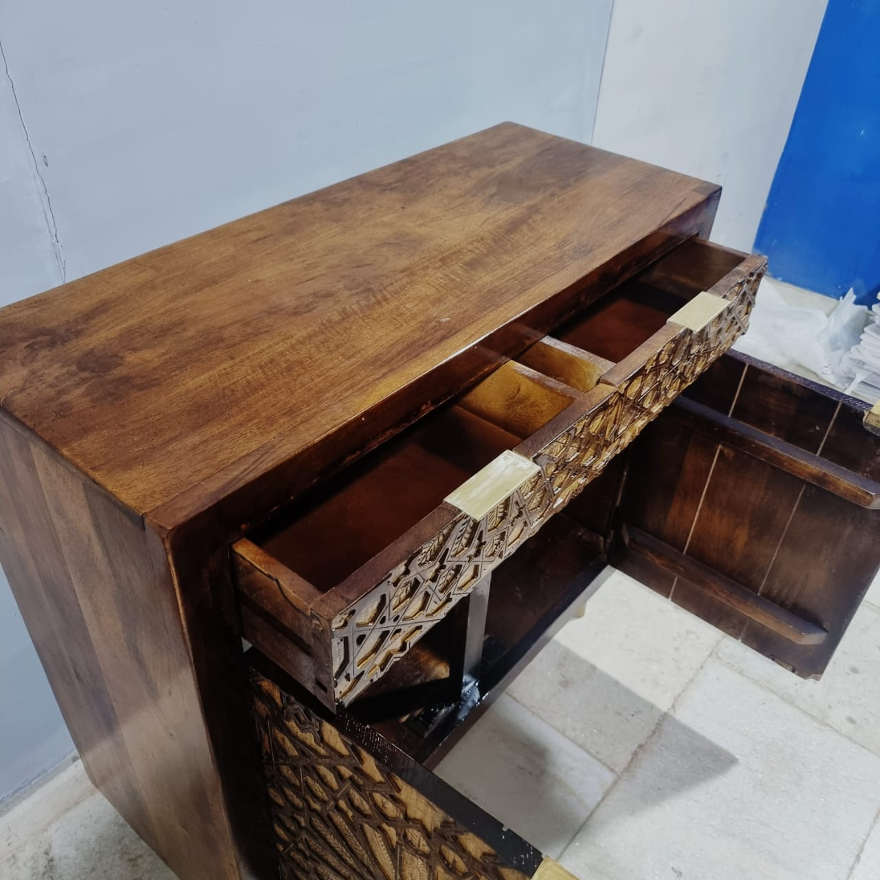 Kraft Bazaar Indian Hand Carved Solid Wood Cabinet D110