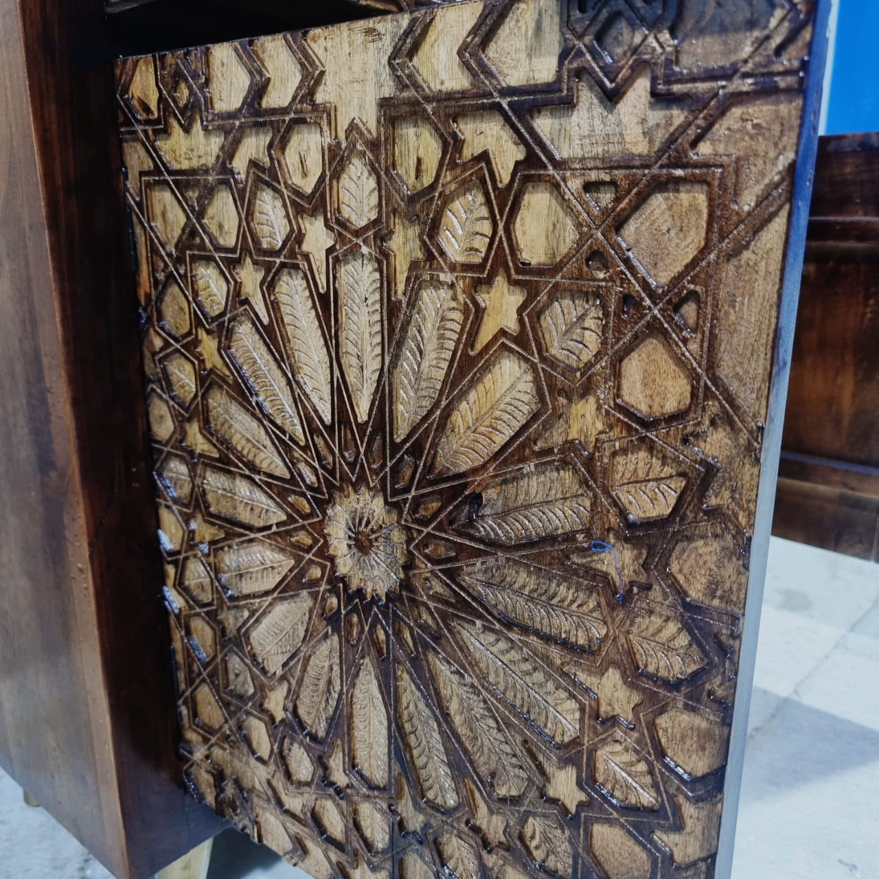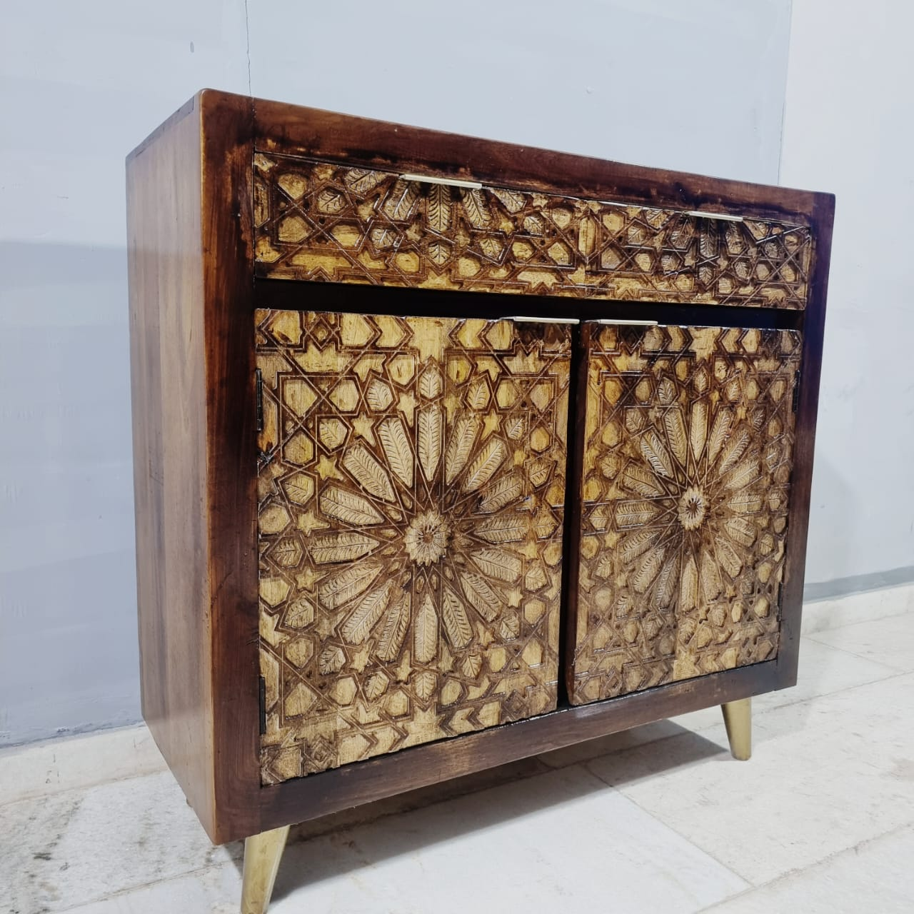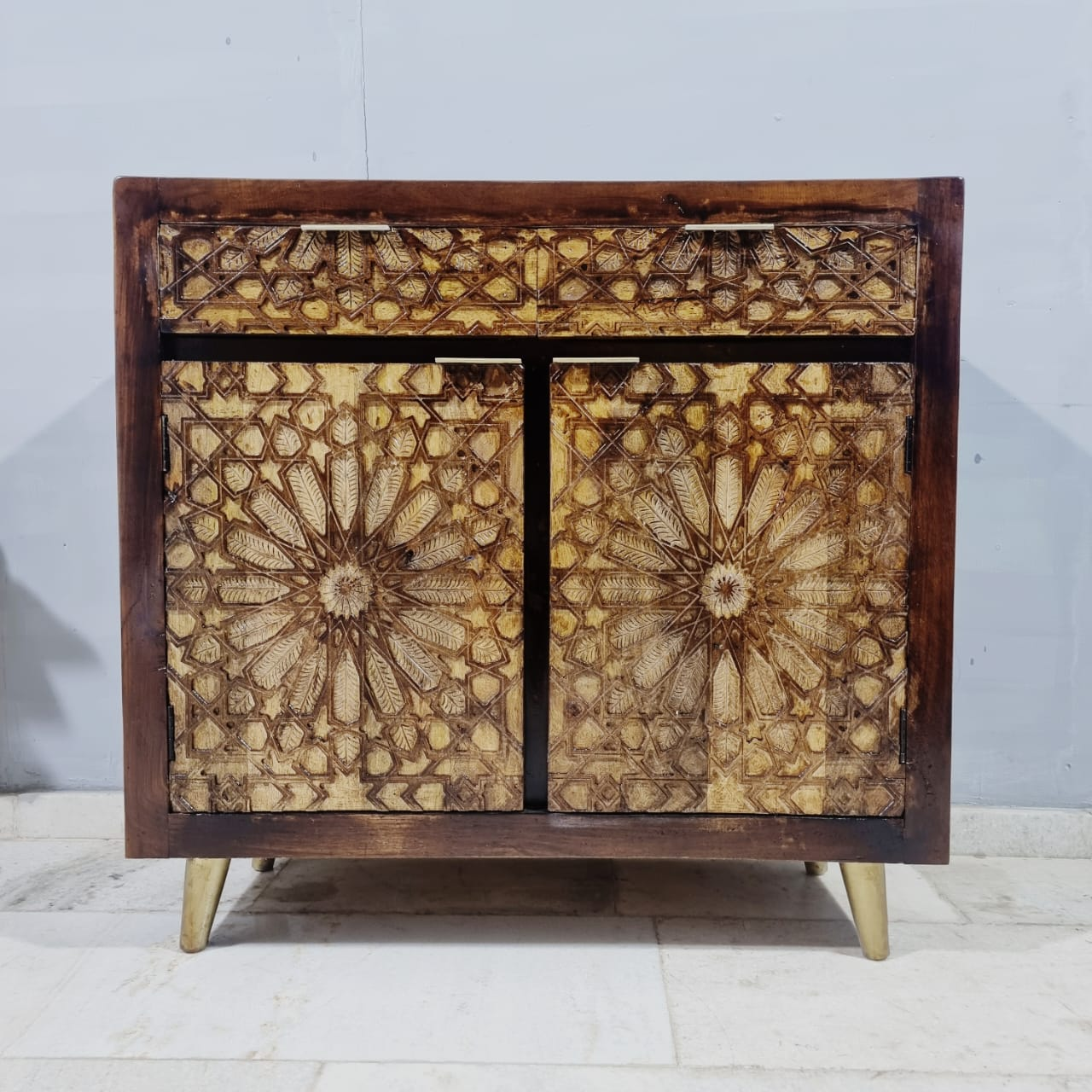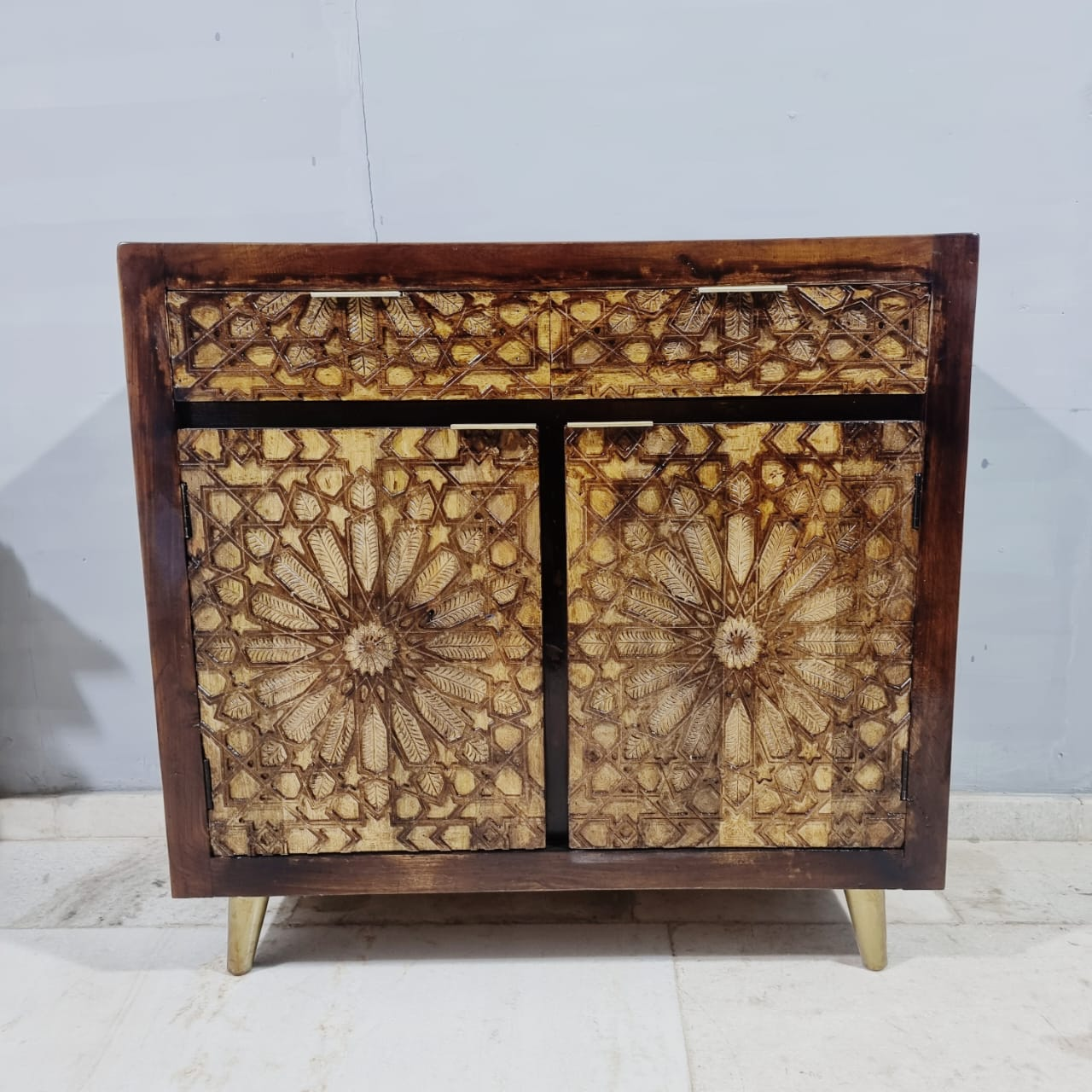 Kraft Bazaar Indian Hand Carved Solid Wood Cabinet D110