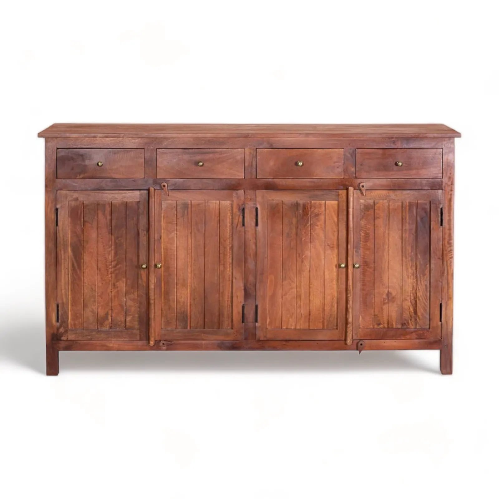 The moment we saw the Fresco, we knew we’d found the one. It’s that perfect balance of Mid-Century form, Scandi simplicity and Art Deco pizazz with its subtle antique brassy finished knobs and handles. You’ll want to store everything in this mango wood beauty, just so you can use it day-in, day-out. A practical piece with plenty of personality, the storage sideboard offers generous storage space, with 2 large cupboard and 4 drawers, each with metal knobs and handels for easy opening. With plenty of shelf space to store all your favourite crockery, files, cookbooks, pictures, if you would prefer this piece in your kitchen it has ample space for crockery and other bits and bobs. This solid wooden sideboard is crafted from solid Mango wood with a dead matt finish, allowing the simplistic design to truly shine. The storage sideboard will match natural and modern décor, and will allow your accessories to stand out.