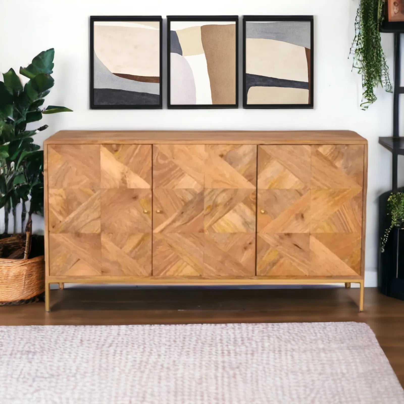 The natural wood grain on the Riviera falls, head first, into our ‘must-have materials’ list – for the mesmerising graphic patterning on its facade. Created by oscillating tiles of timber, the intriguing parquet zigzag on this sideboard is reflected by a subtle chamfer on its outer frame. Because we just love an angle. And the fresh zing of golden legs will bring you out of your design-induced hypnosis in three… two…