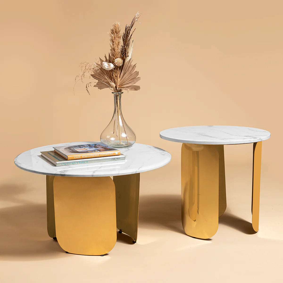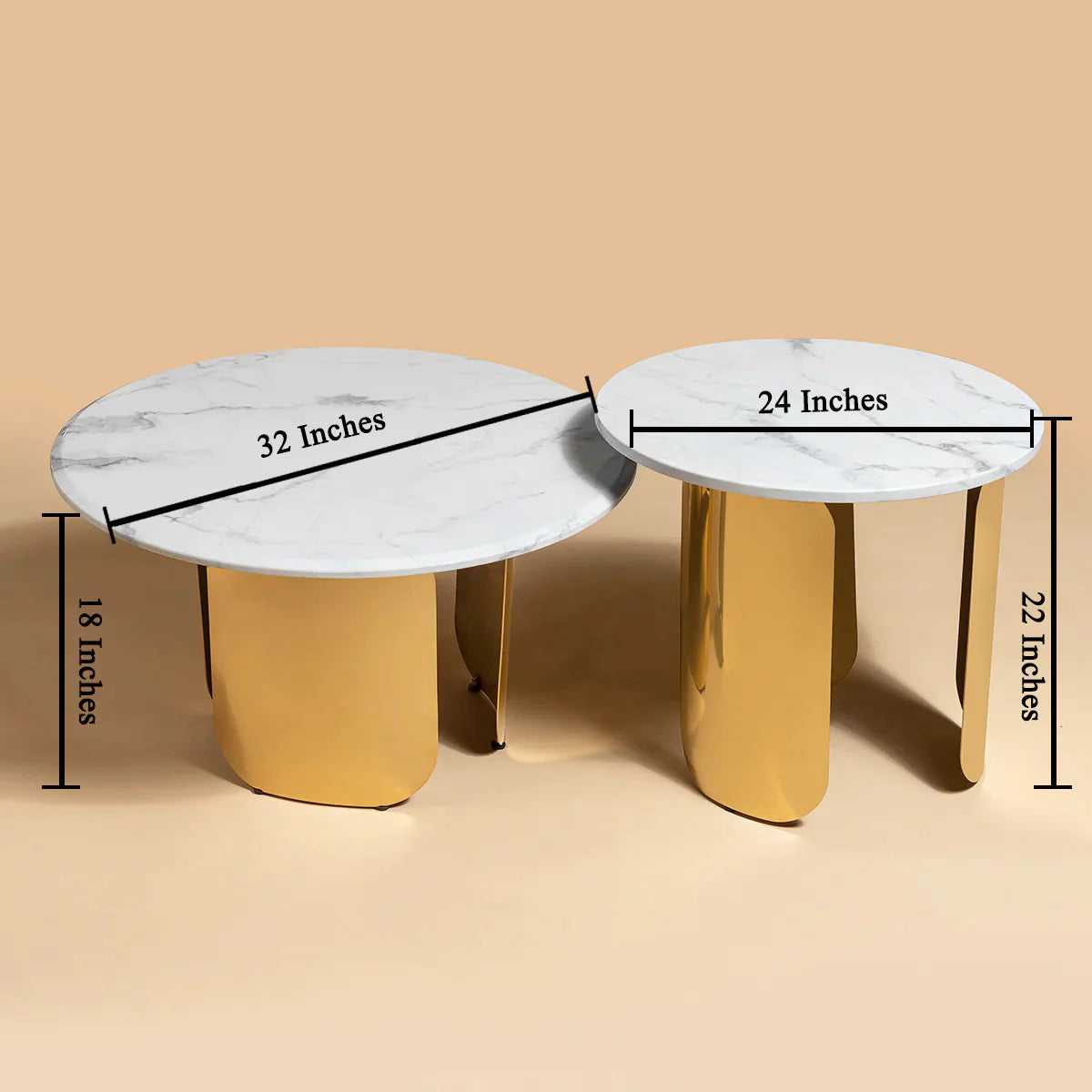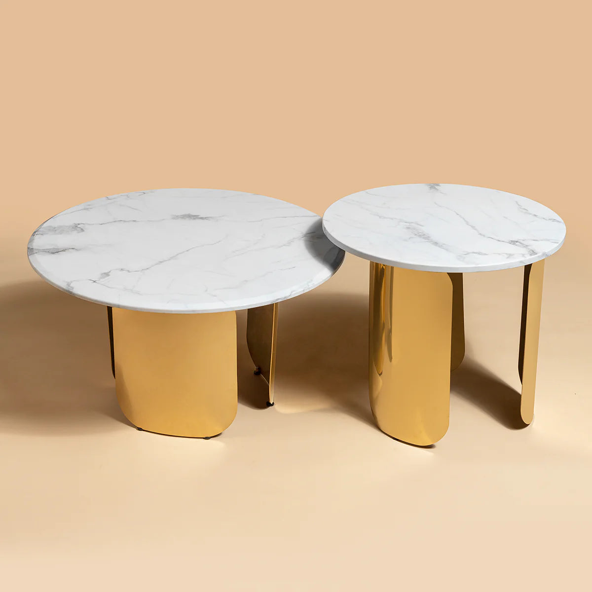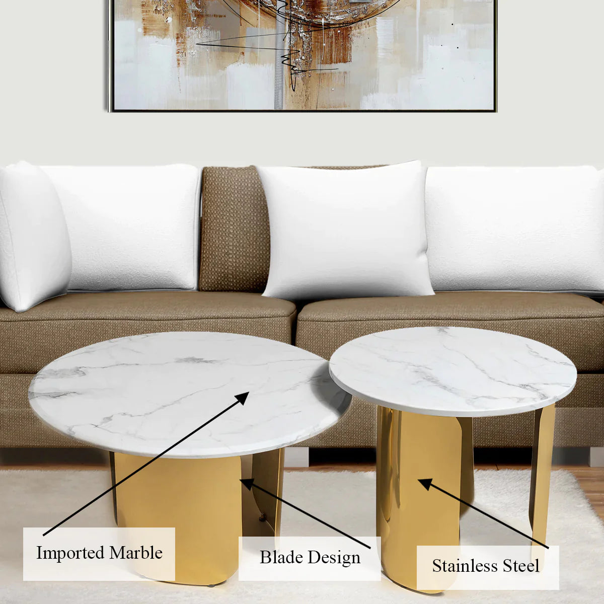 Luxe Slate Centre Table for Living Room - Set of 2 (Stainless Steel)
