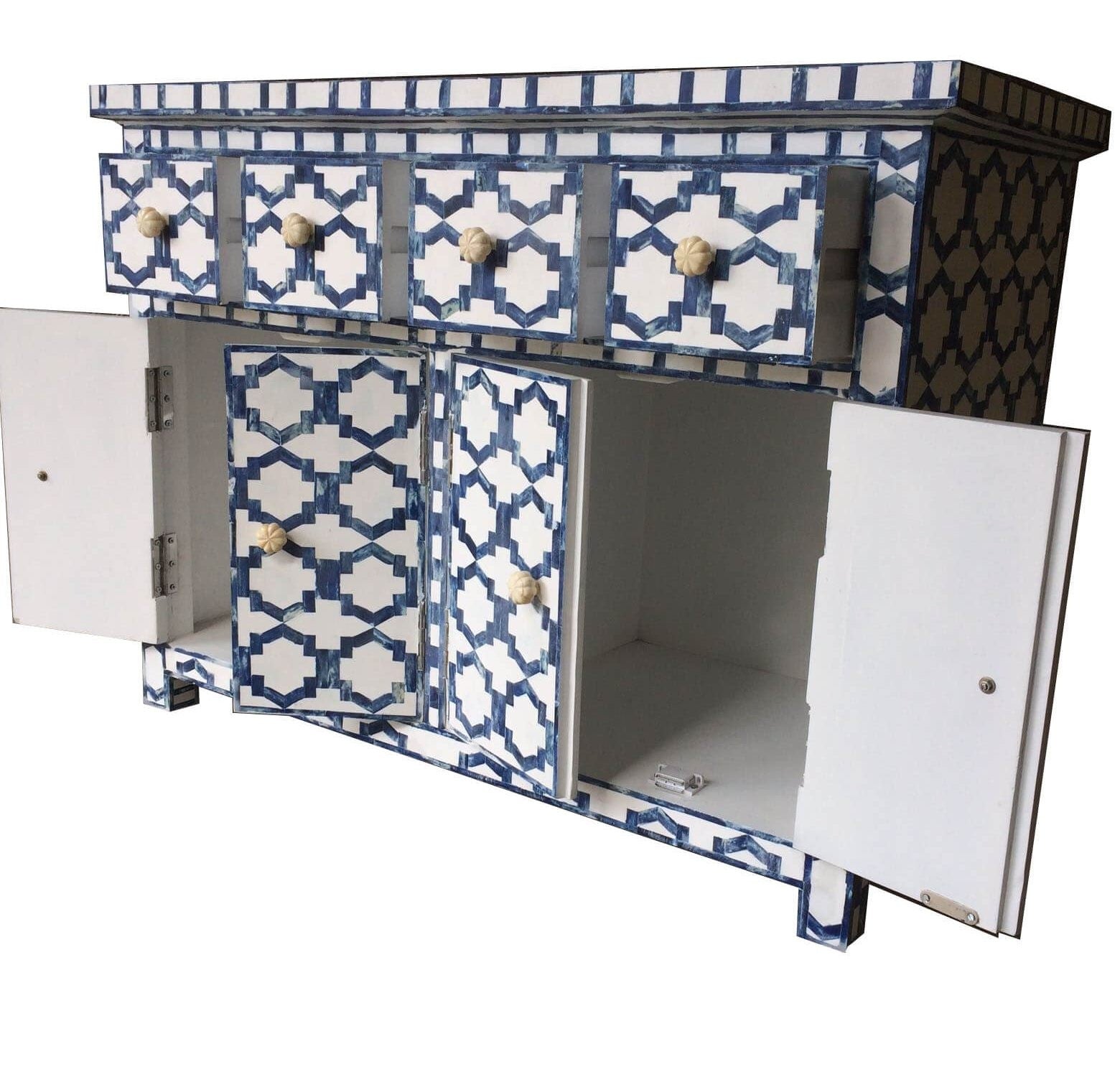 This listing includes : 1 x Maaya Bone Inlay Sideboard Blue Floral