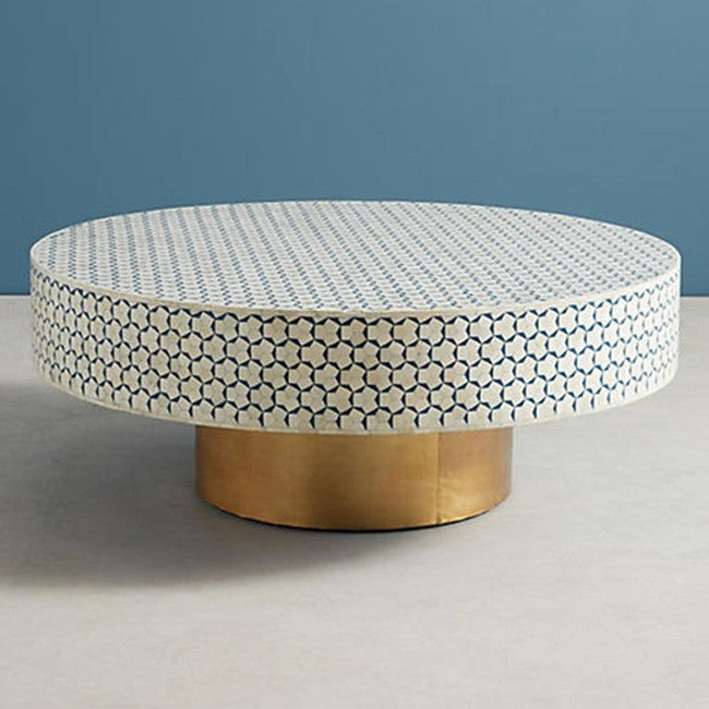 This listing includes : 1 x Authentic Bone Inlay round drum coffee table
