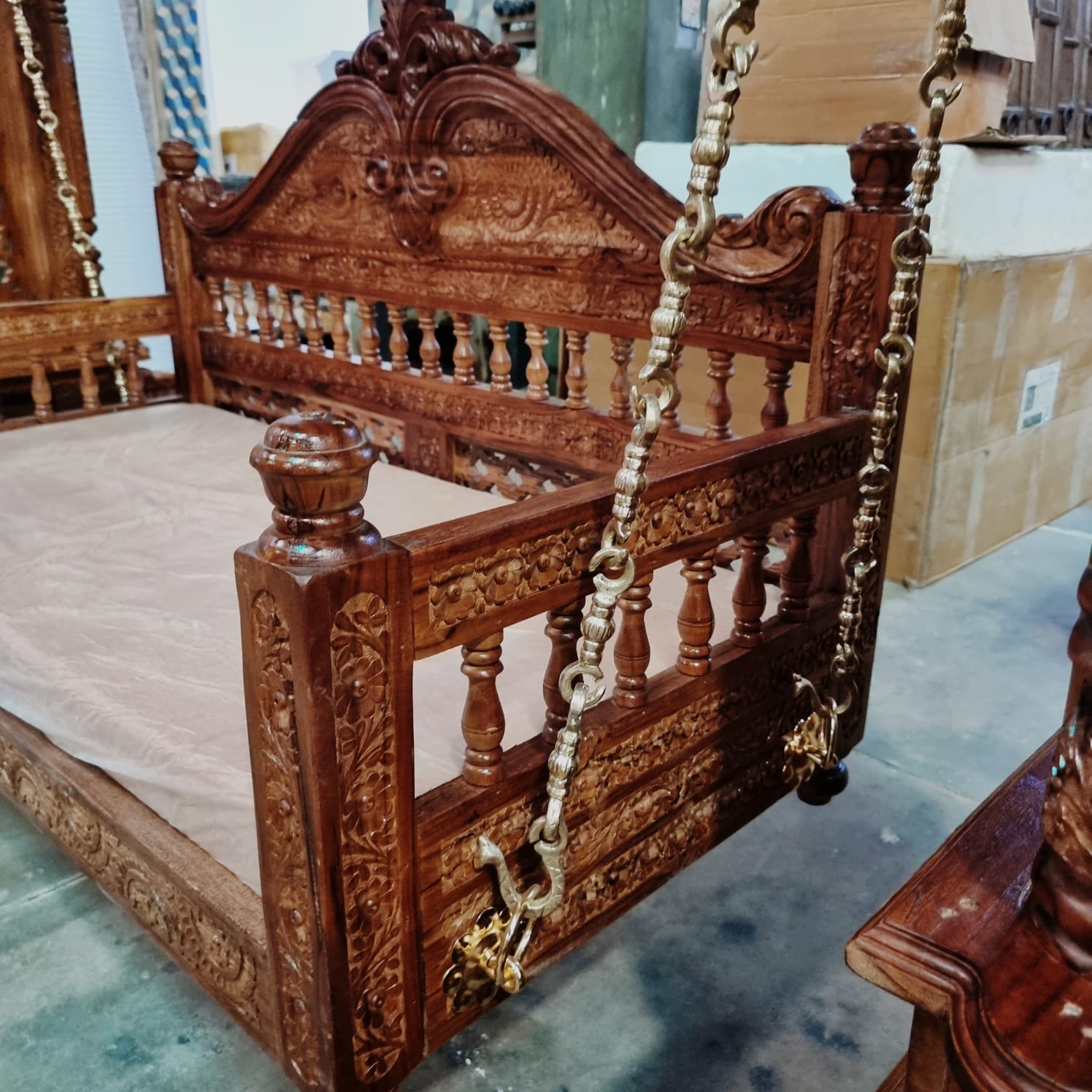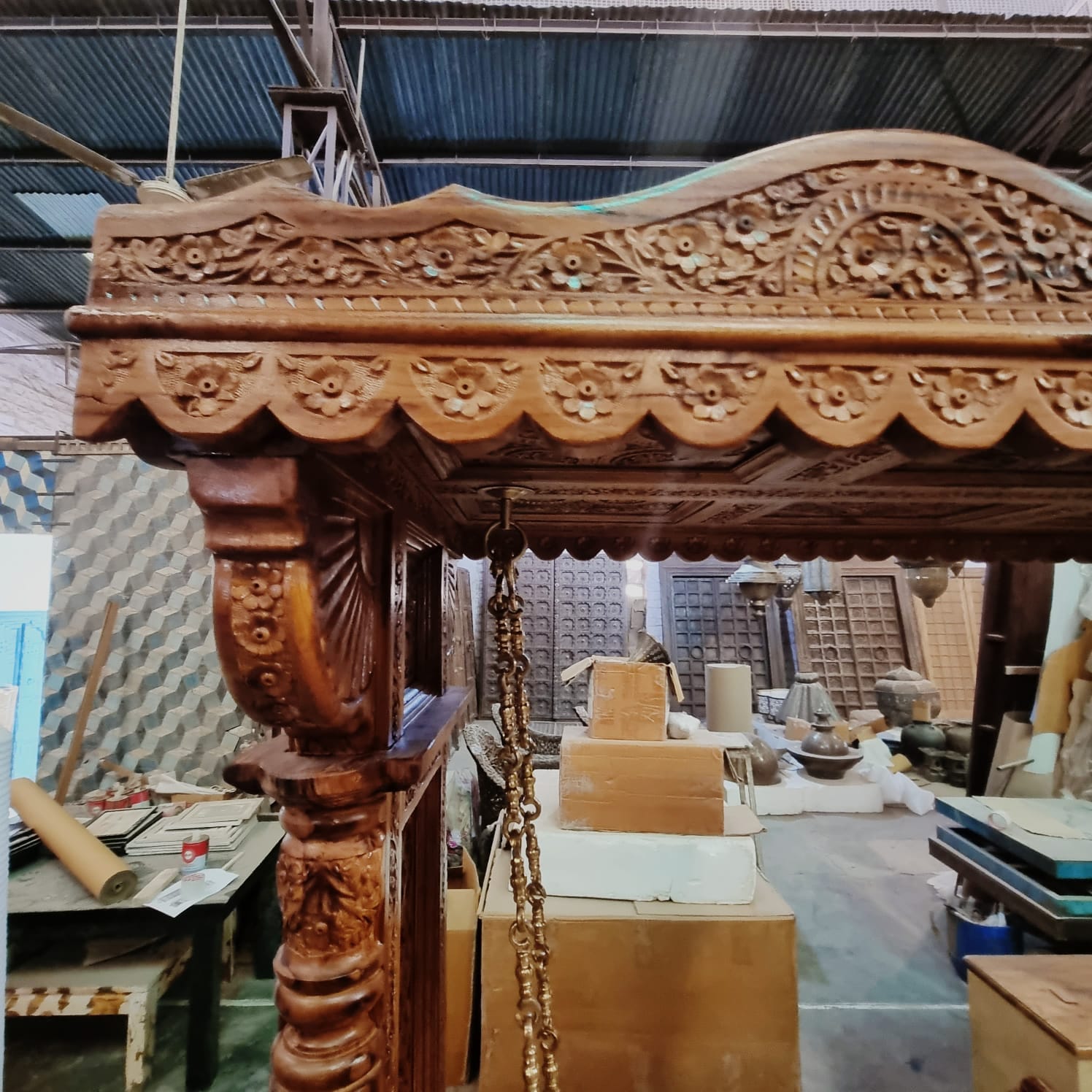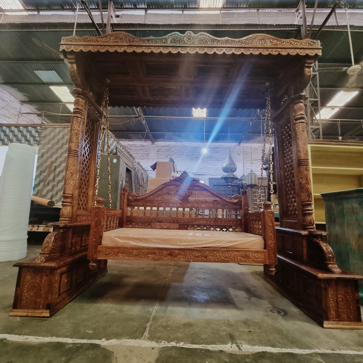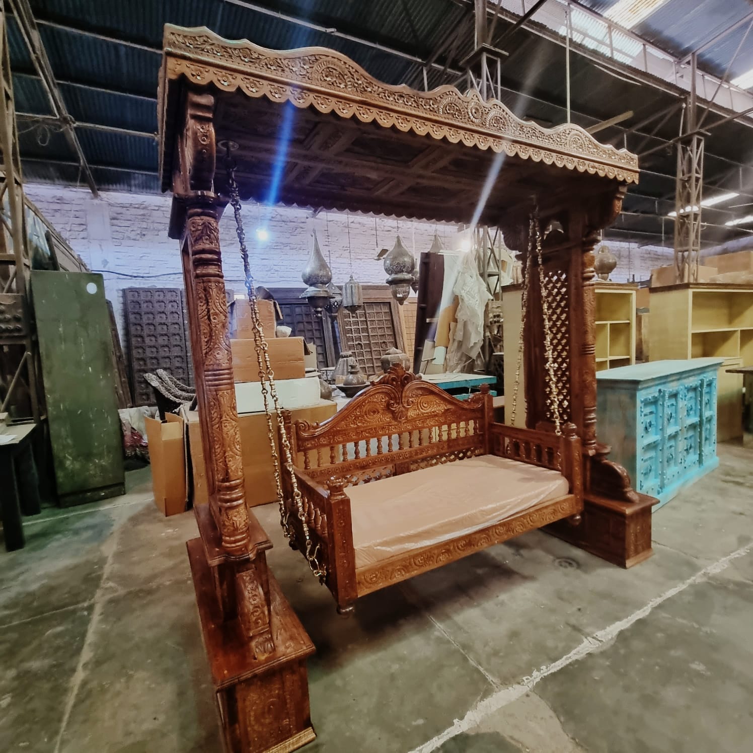 Maharaja Indian Traditional Hand Carved Solid Wood Swing 4