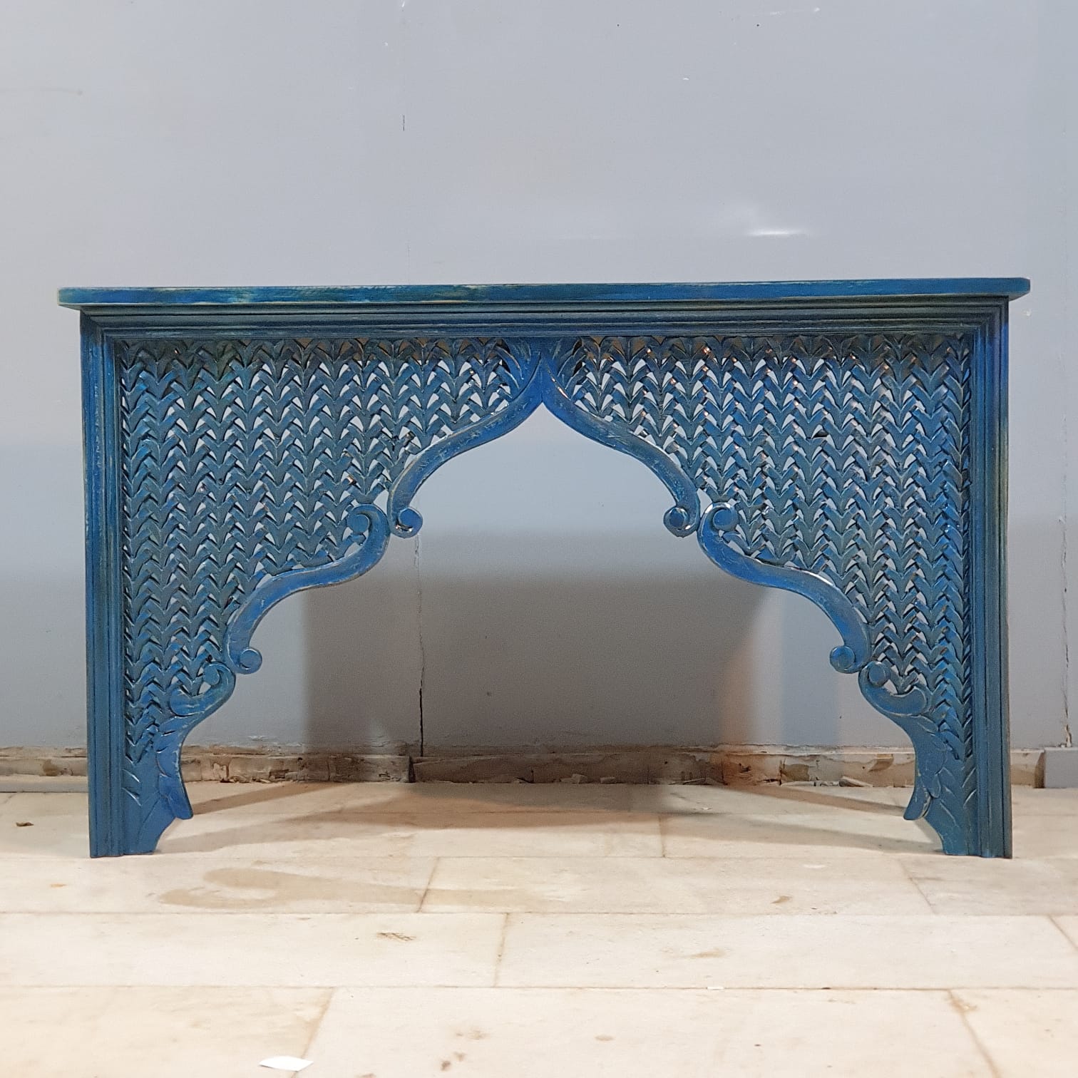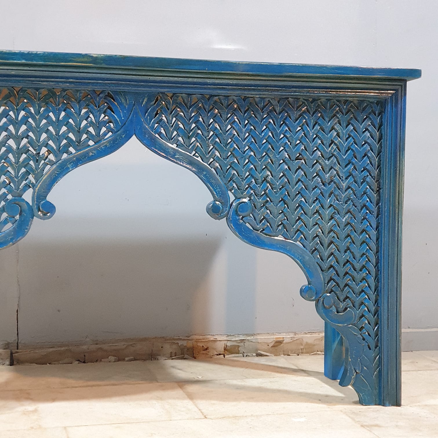 Mehrab Indian Hand Carved Jali Hall Console Table Blue 150x40x90 cm