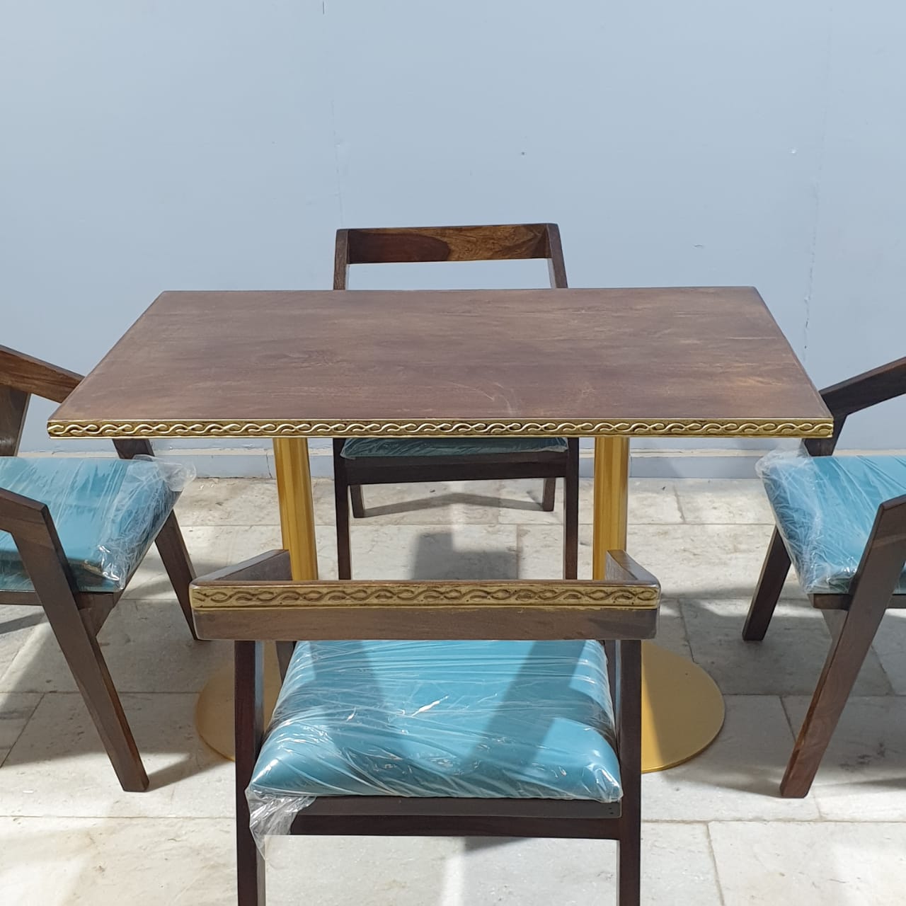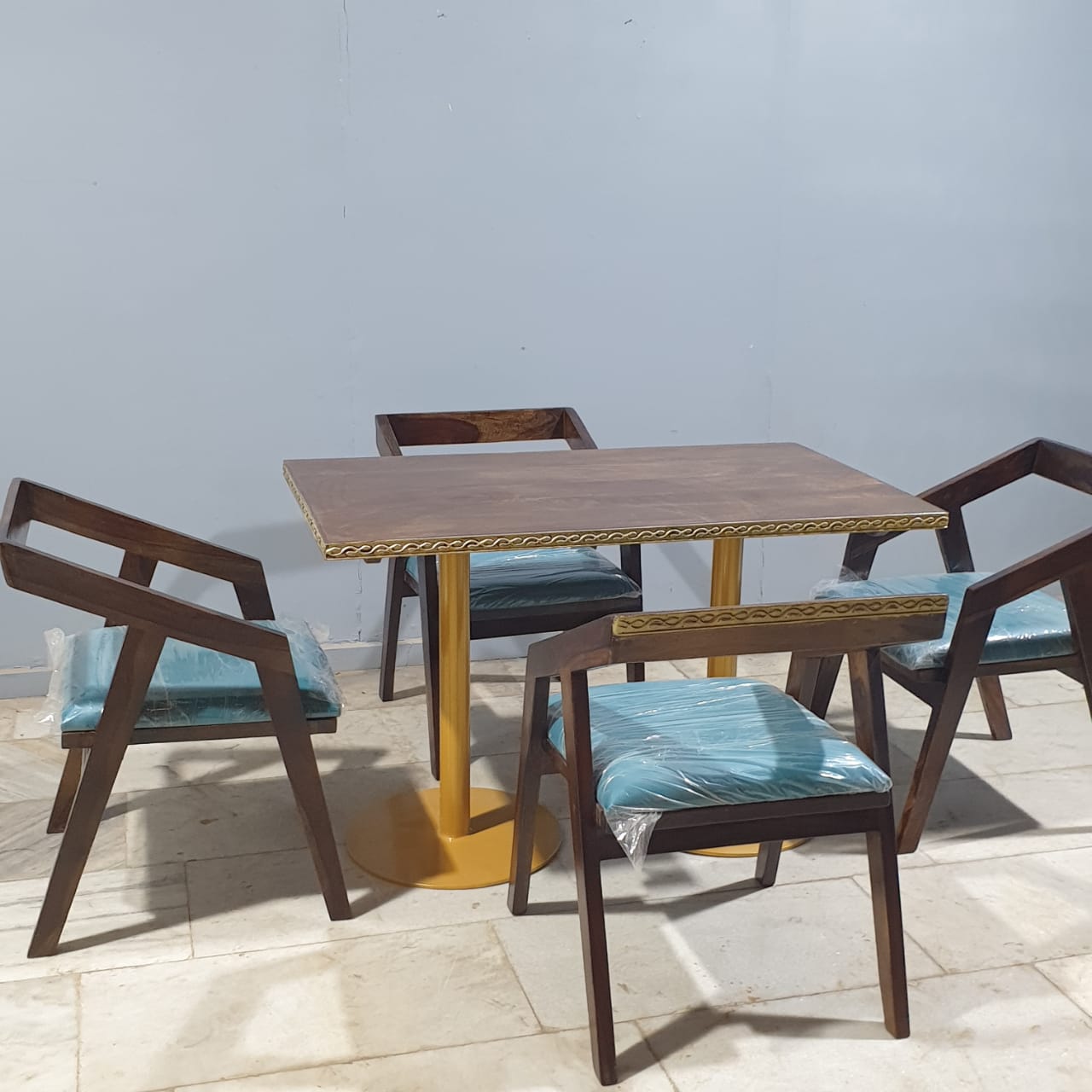 Metal Pedestal With Wooden Top Dining Table Set 18