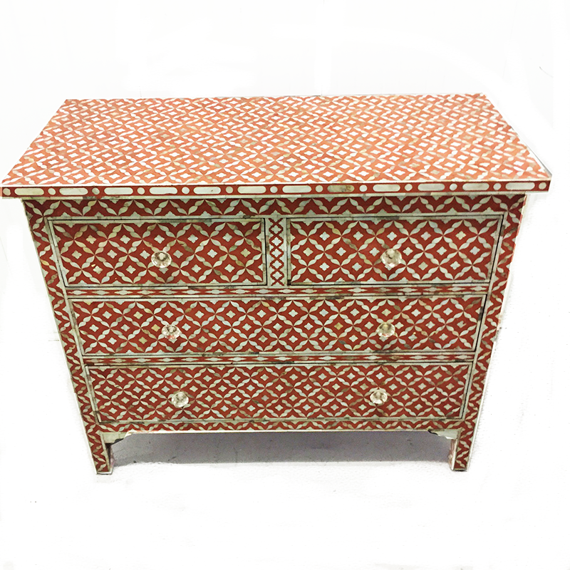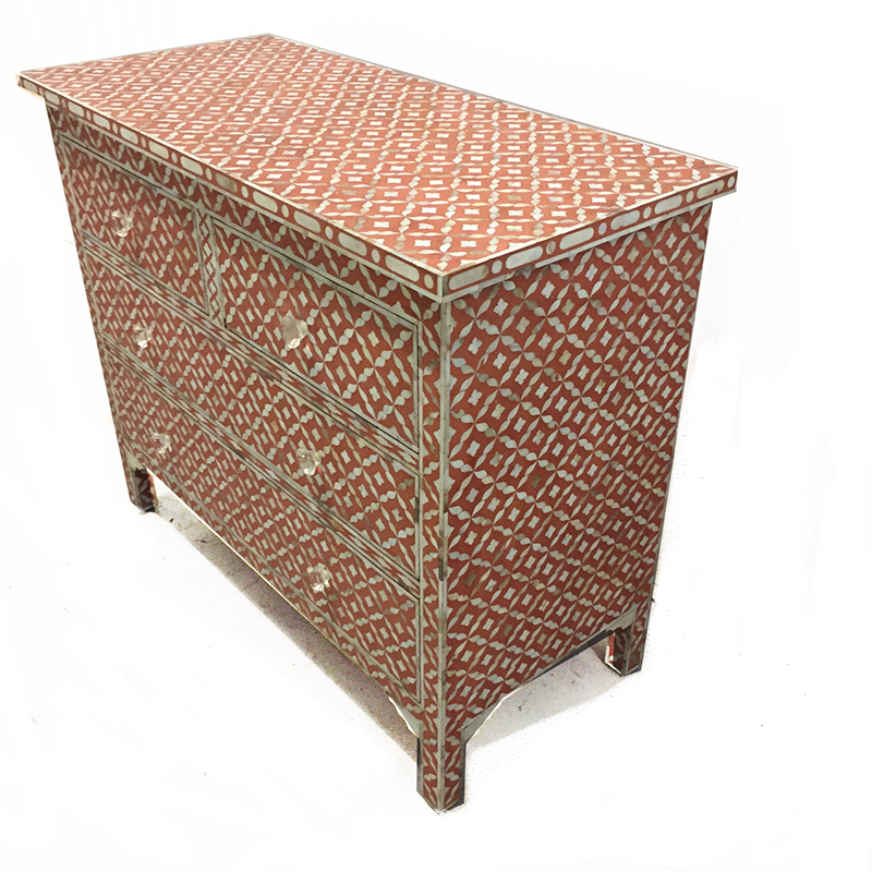 This listing includes : 1 x Mother of Pearl chest of Drawer sideboard Terracotta