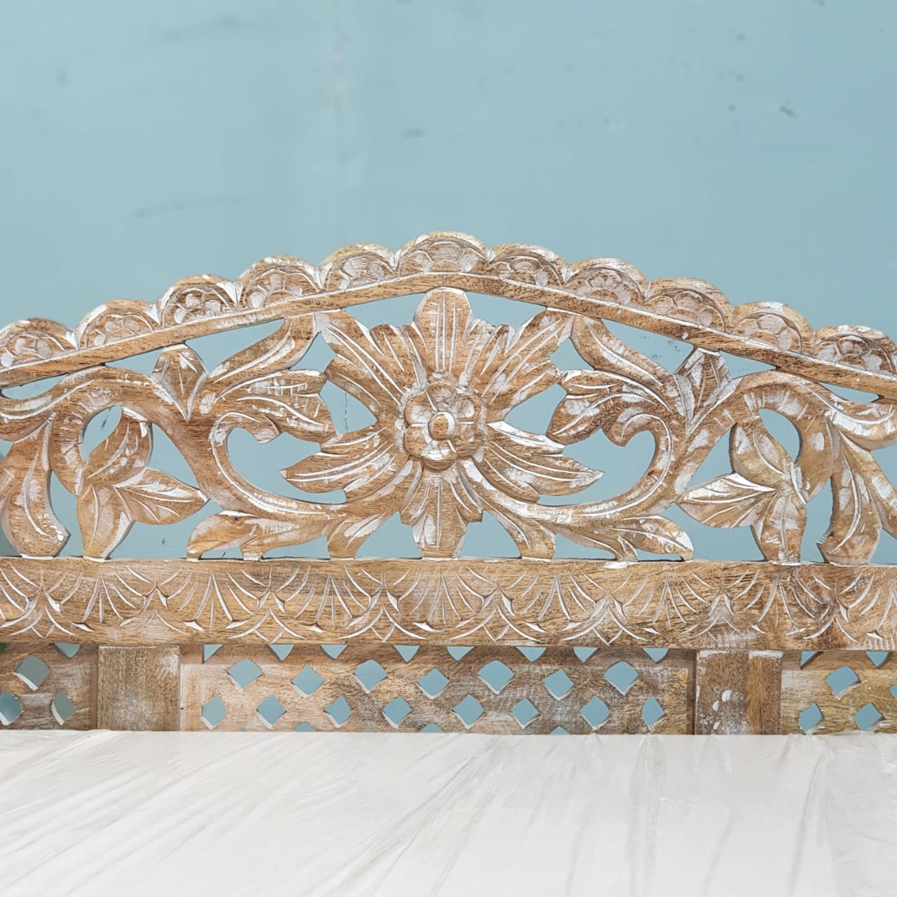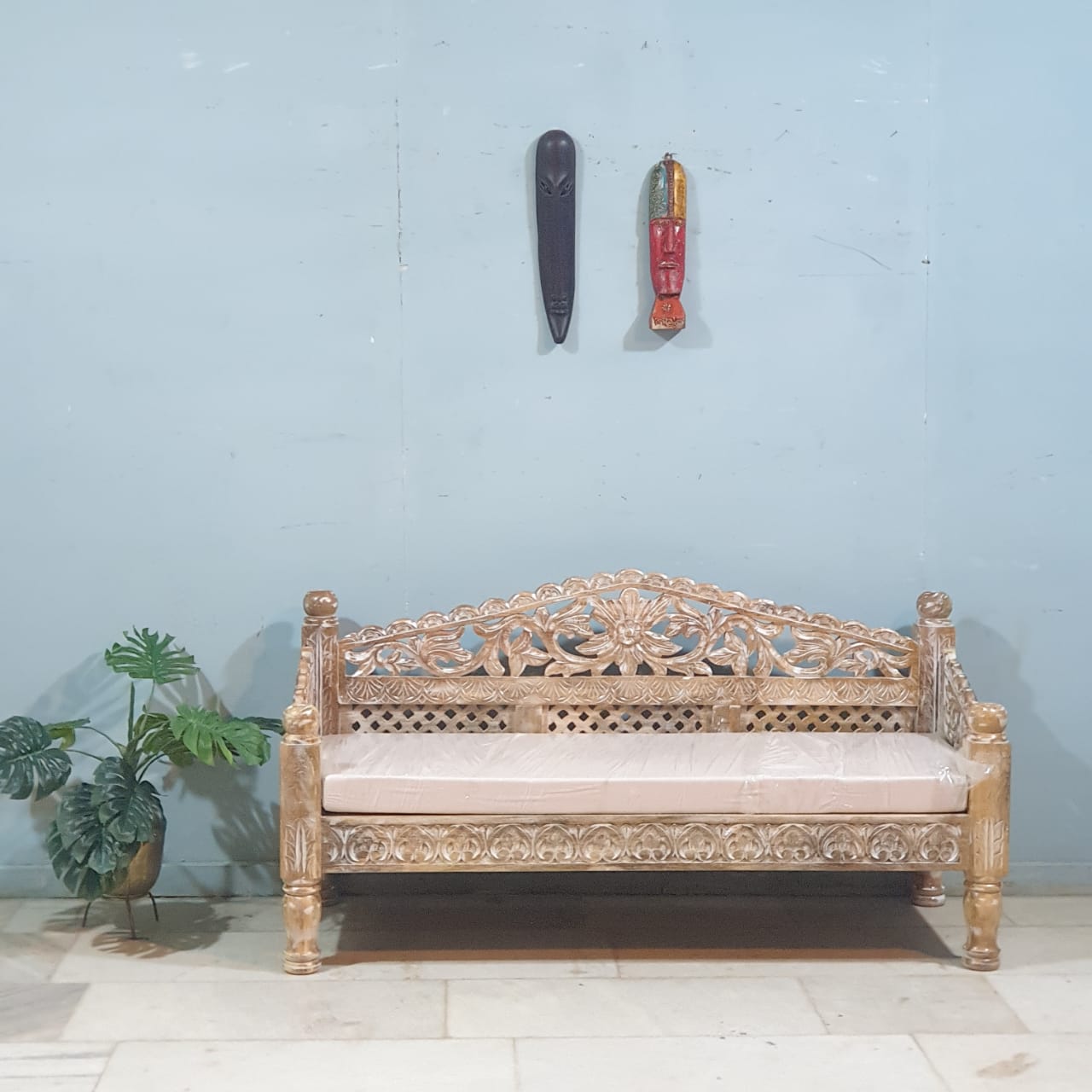 Mughal Garden Hand Carved Balinese Daybed Limewash 150x60x80 cm