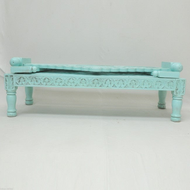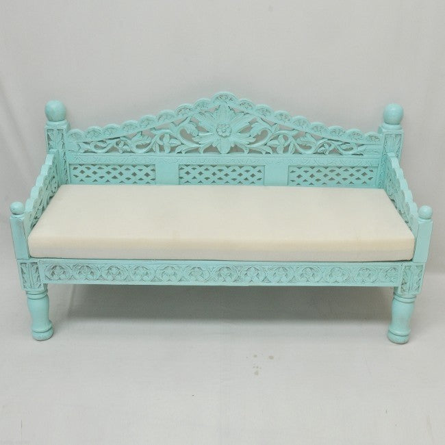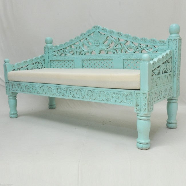 Mughal Garden Hand Carved Balinese Daybed Turquoise M