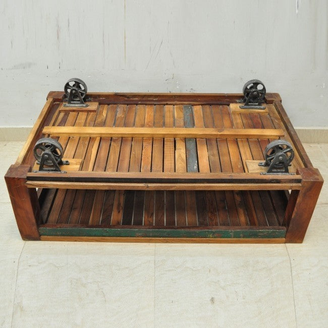 NIRVANA Reclaimed boat timber Coffee Table on Wheels 135x80x50cm