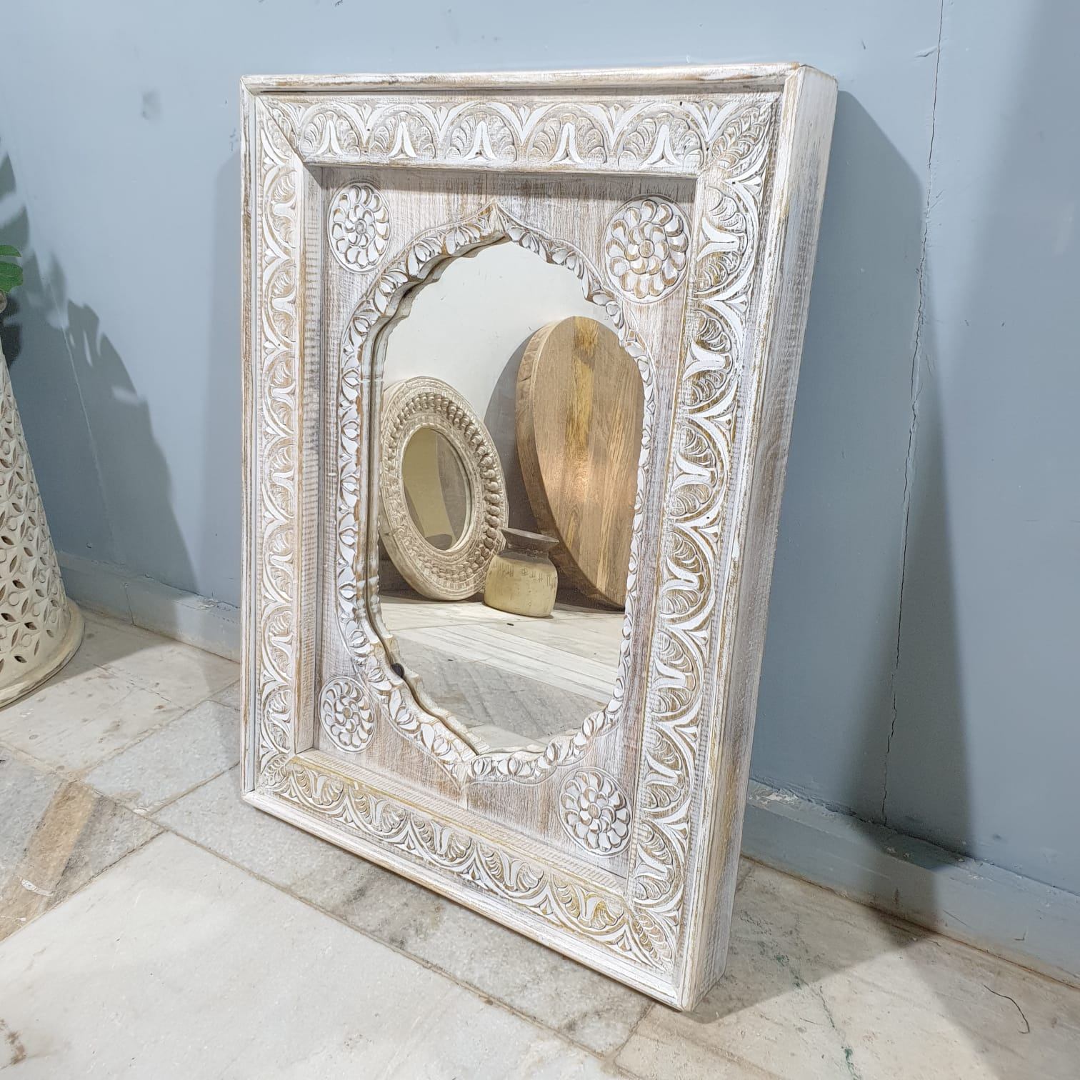Make a statement with these magnificent mirrors. Our carved mirror collection reflects the workmanship and vibrancy of the craft of Jodhpur, a city in the north-western part of India. The artisans follow every intricate detail and hand carve wooden frames to bring these beautiful mirrors to life.