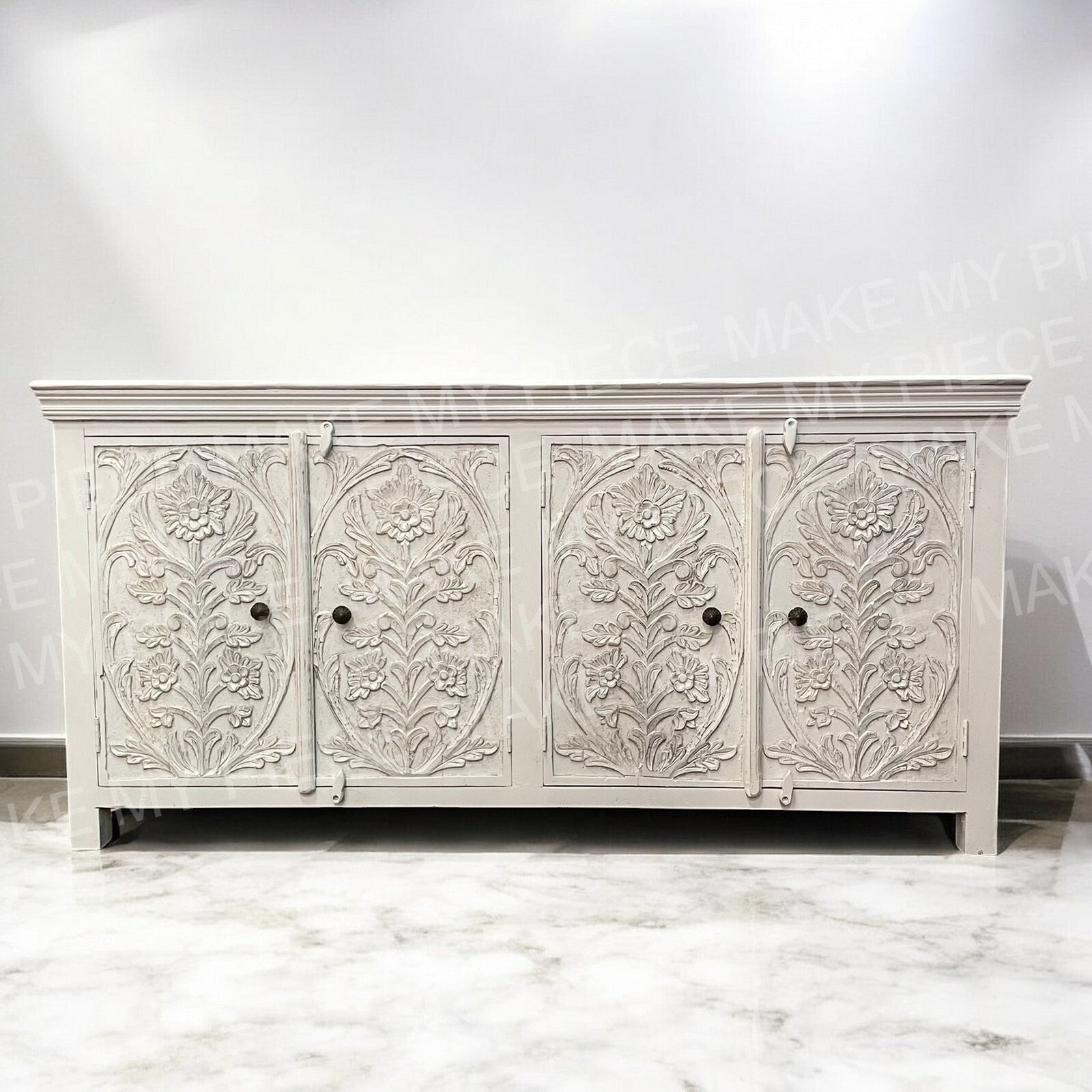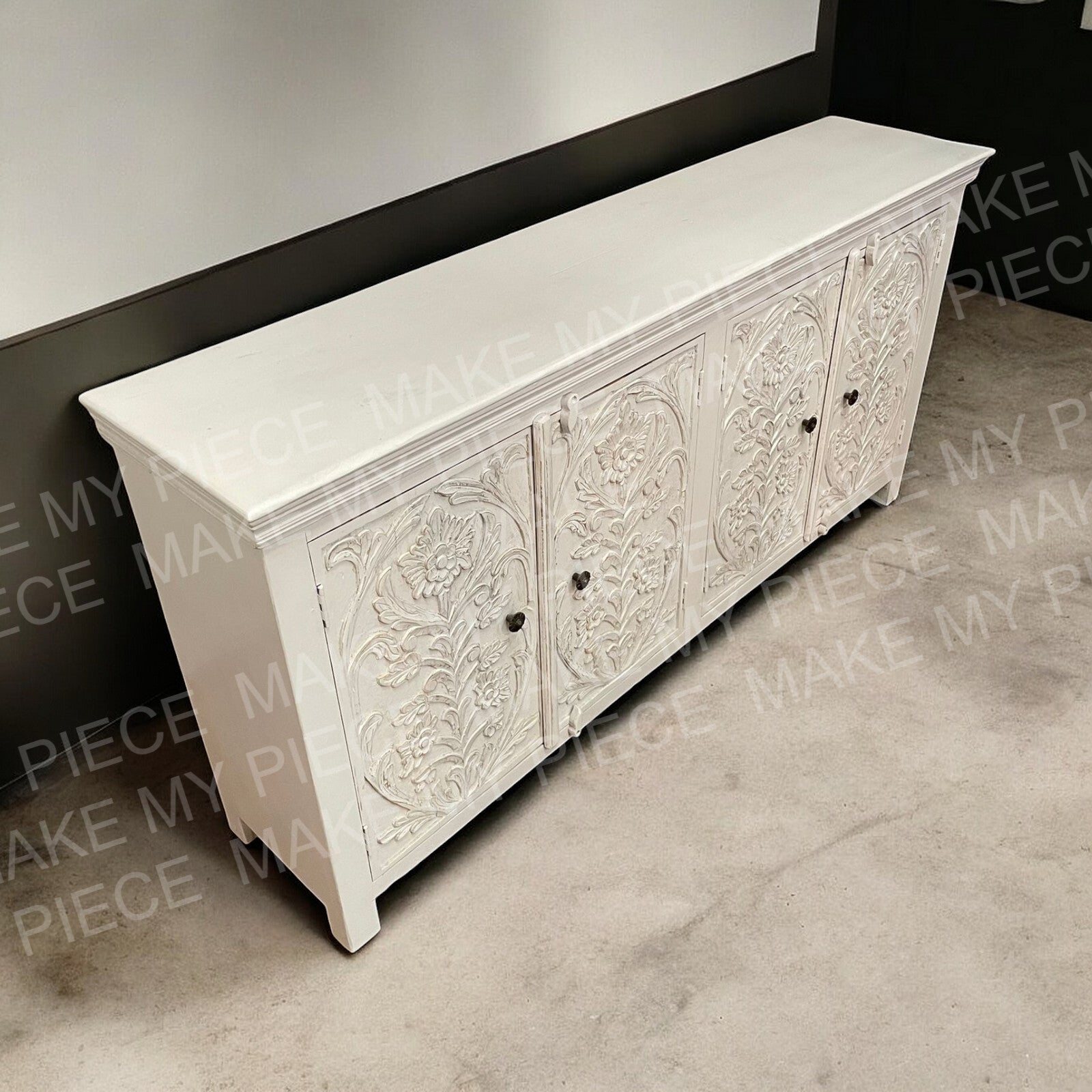 ORCHID DESIGN Indian Hand Carved 4 door Sideboard White