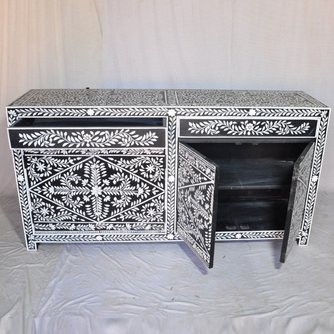 BONE INLAY BLACK FLORAL SIDEBOARD A