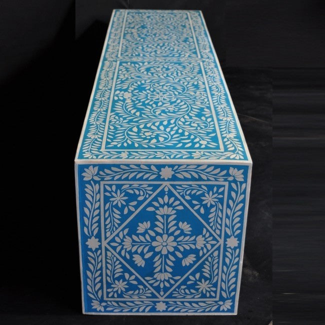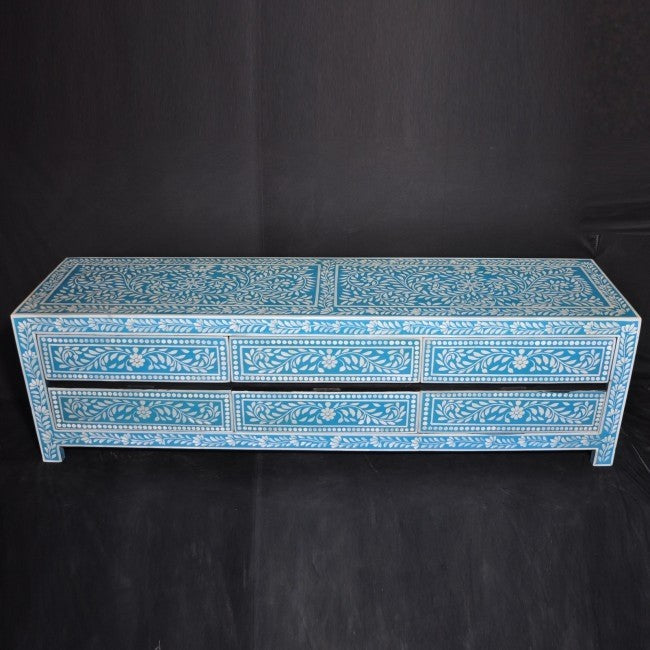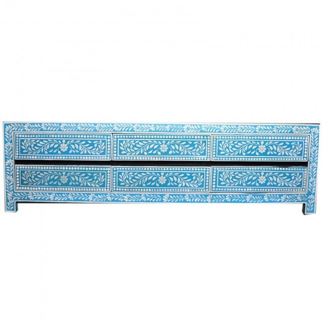 BONE INLAY BLUE FLORAL 6 DRAWERS TV UNIT