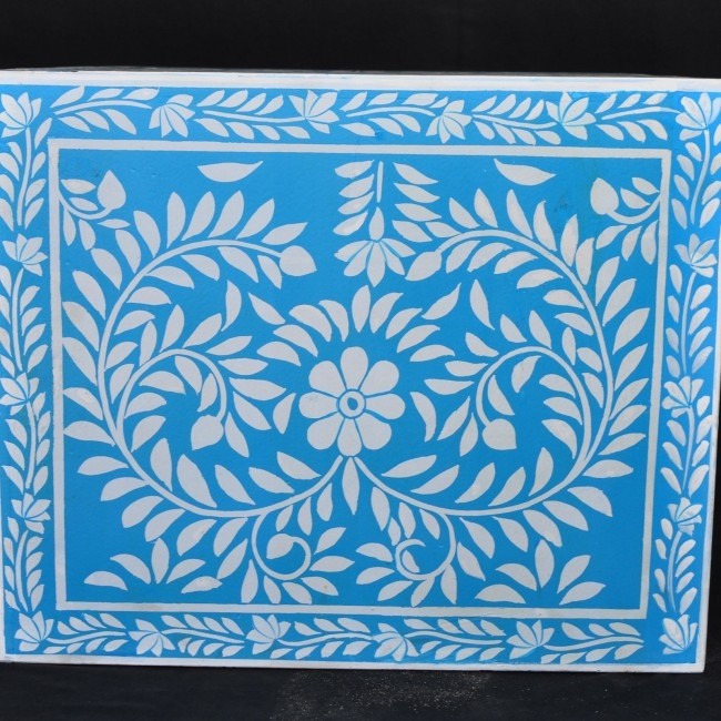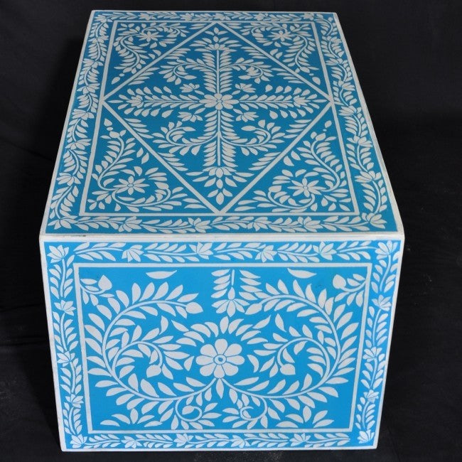BONE INLAY BLUE FLORAL COFFEE TABLE