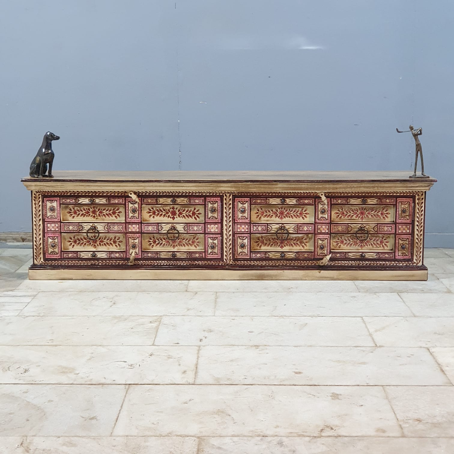 Furniture having intricate hand-painted details are individual unique pieces and may have slight distinctions and variance between the picture and actual product.