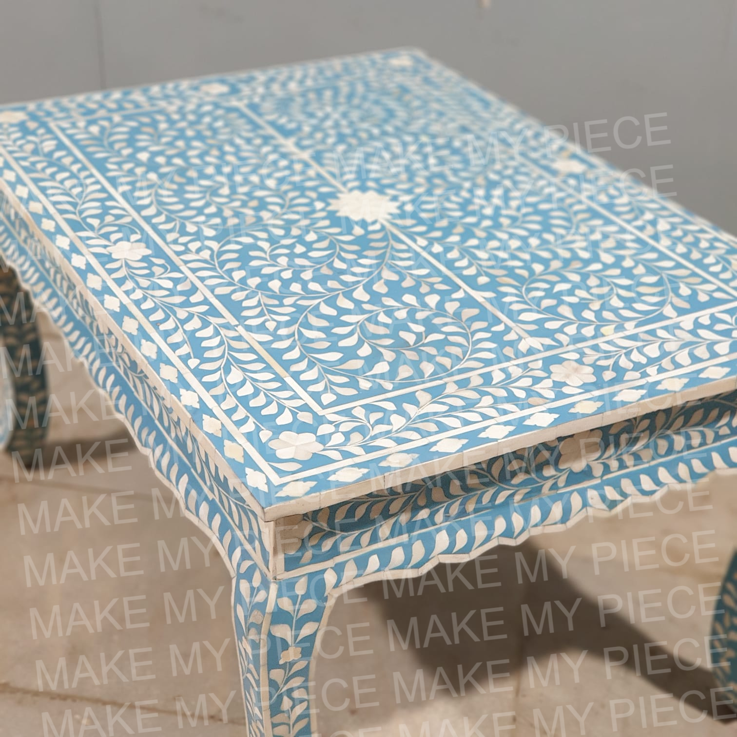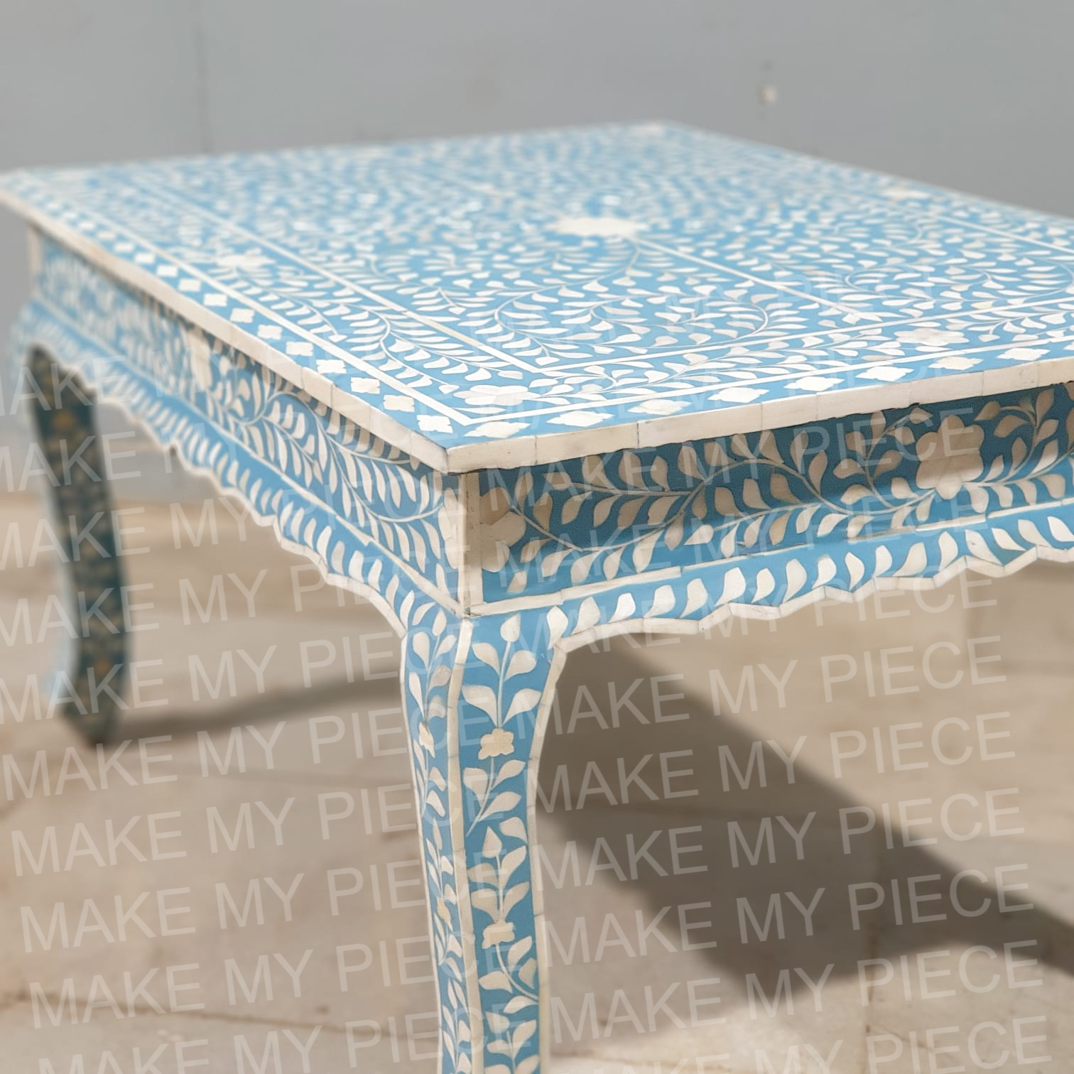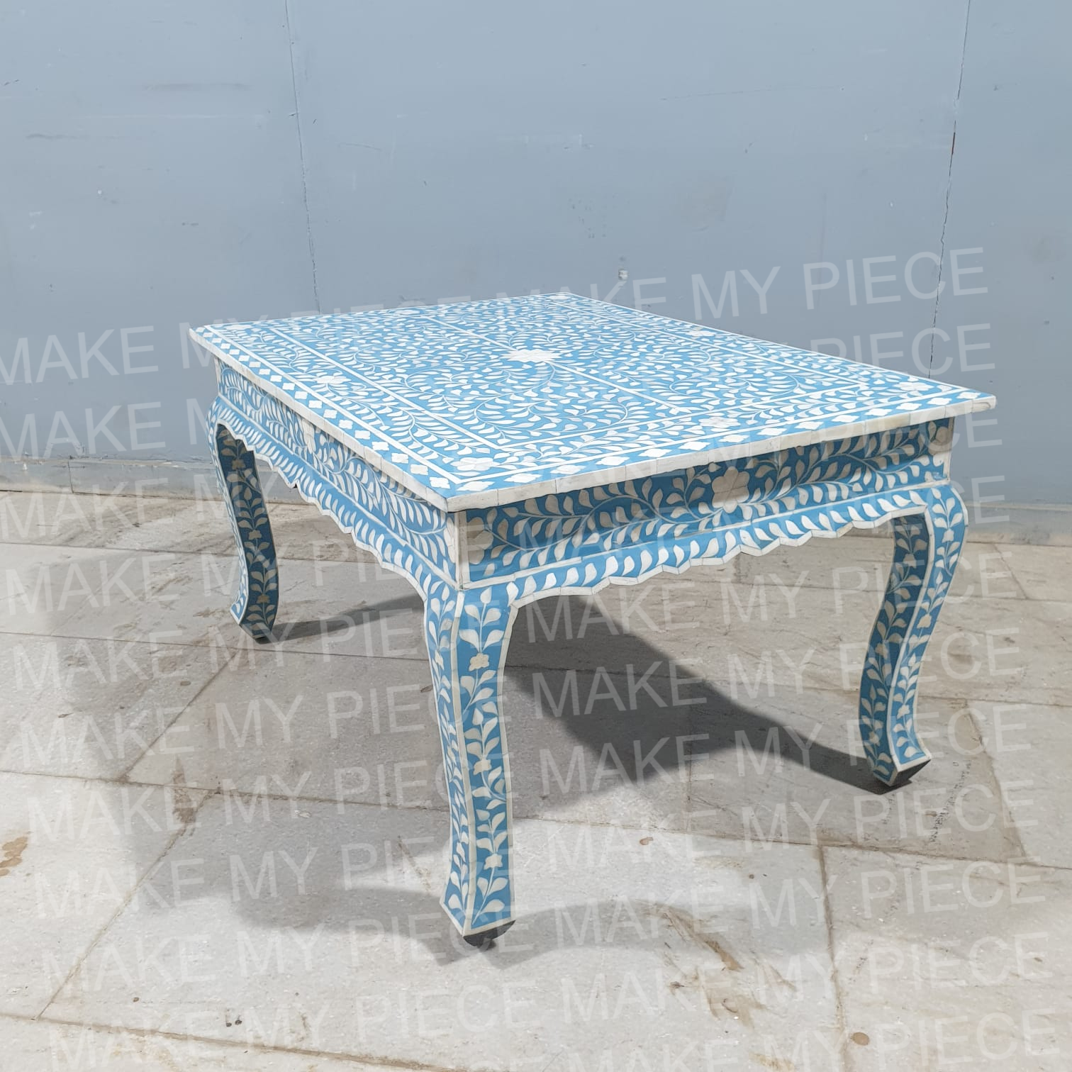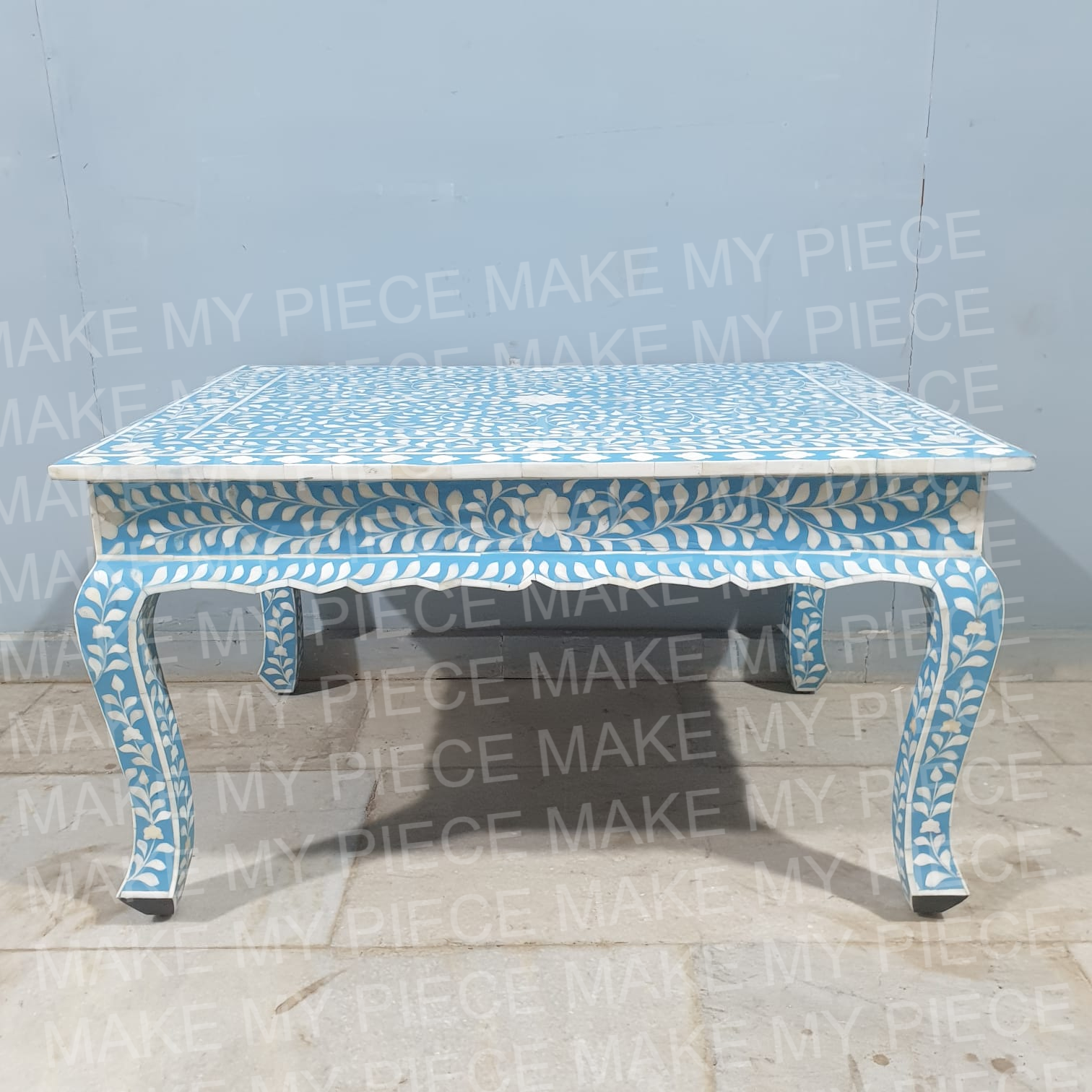 PETER Bone Inlay Anne French Solid Wood Coffee Table Blue White Floral Pattern