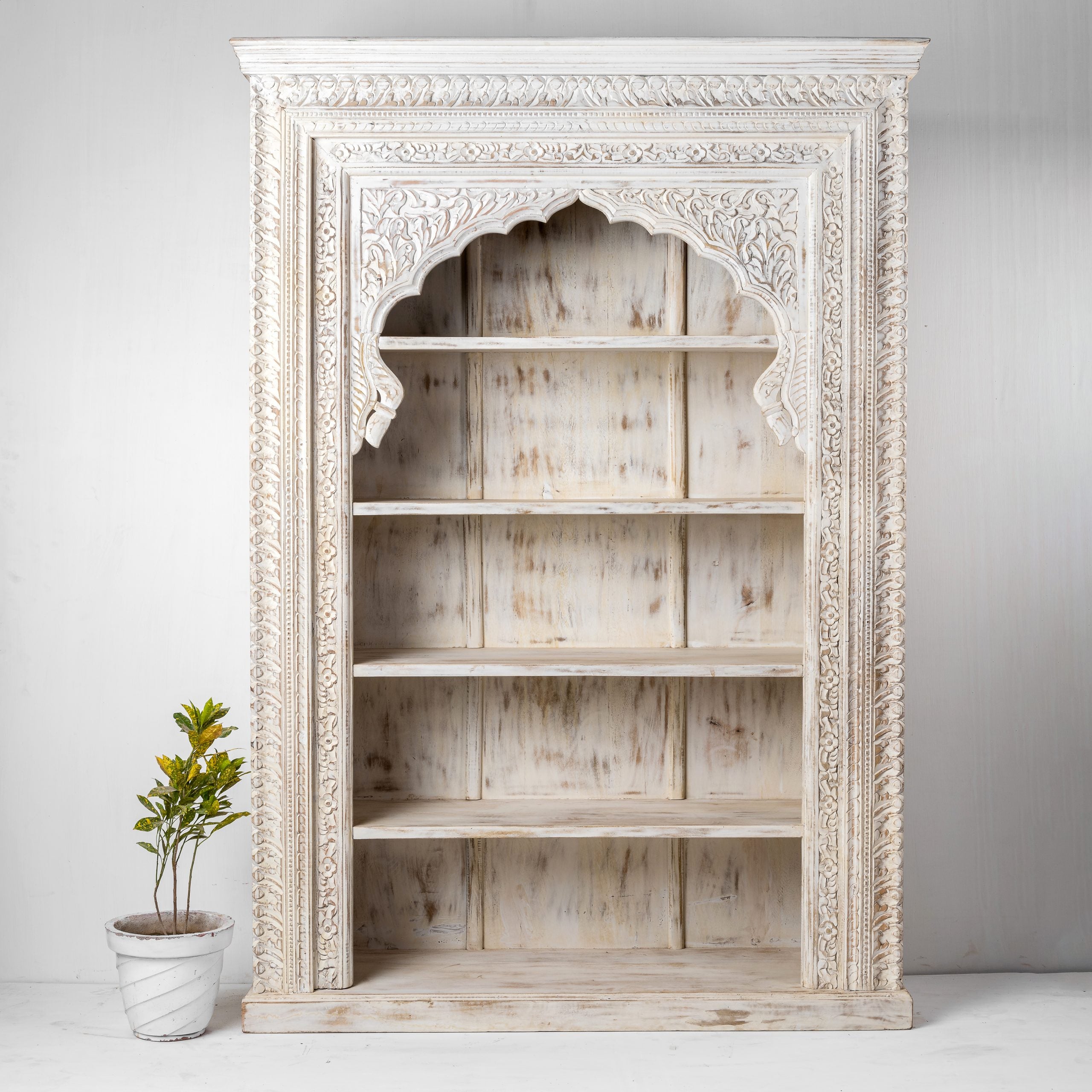 Rajasthan Handcarved Indian Furniture Wooden Mehrab Style Bookshelf