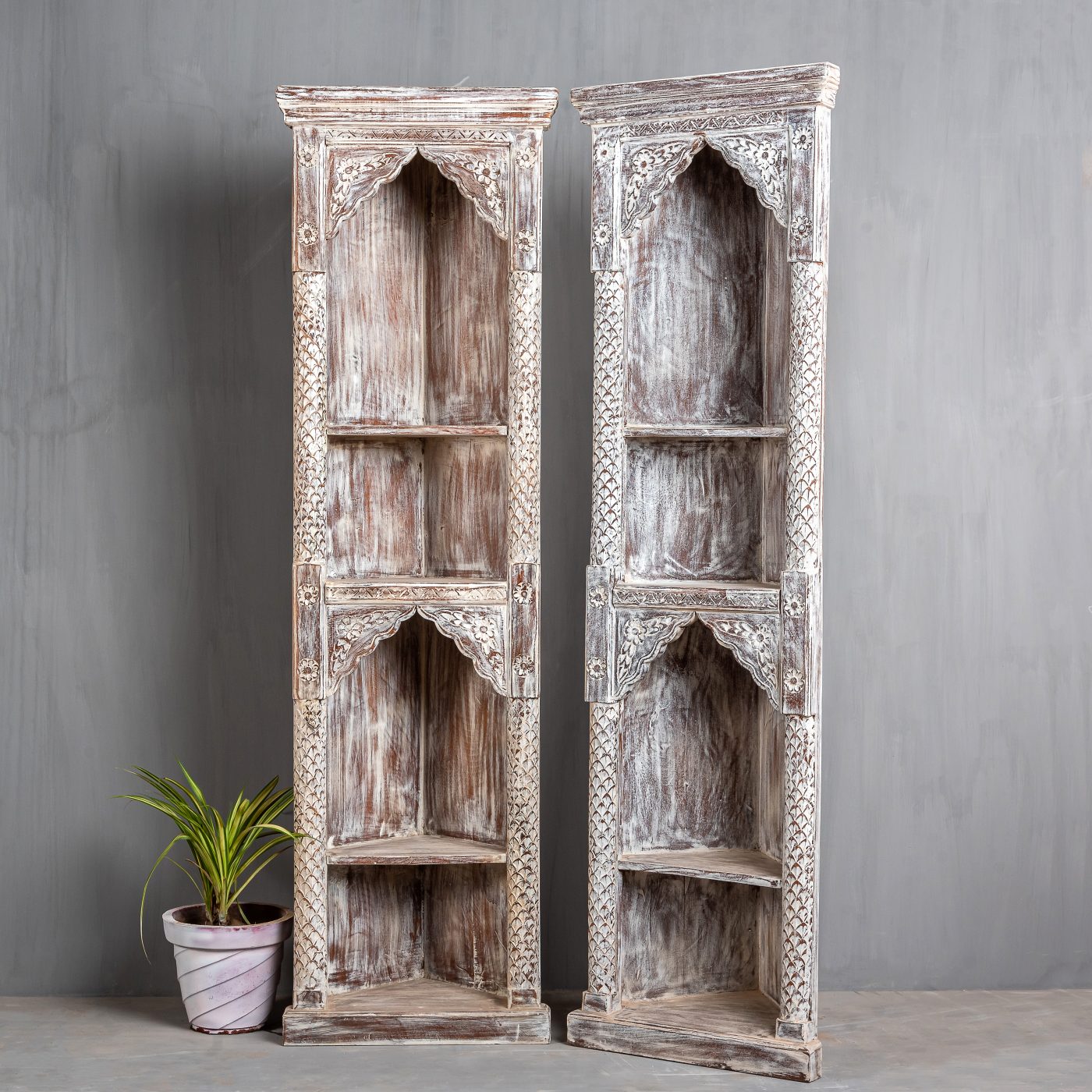 Rajasthan Handmade Indian Furniture Wooden Carved Corner Bookshelf