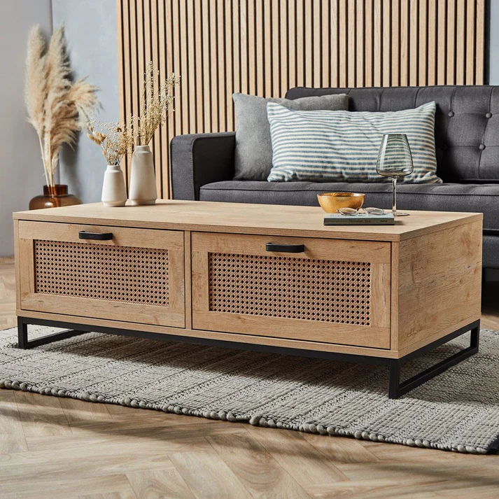 Rattan Elegance Series Mango Wood Cane Round Coffee Table With Drawers