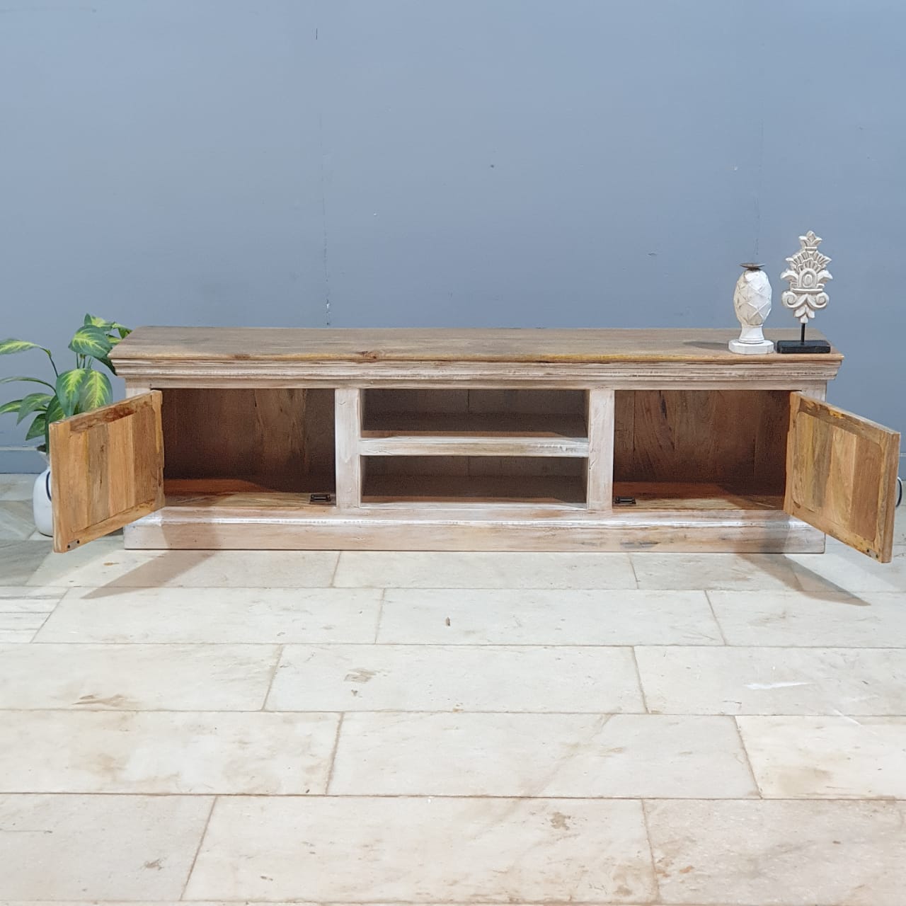 Reclaimed Boat Wood Carved Panel Entertainment Unit TV Stand 180X40X50 CM