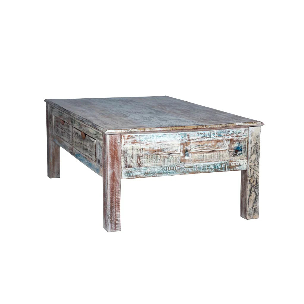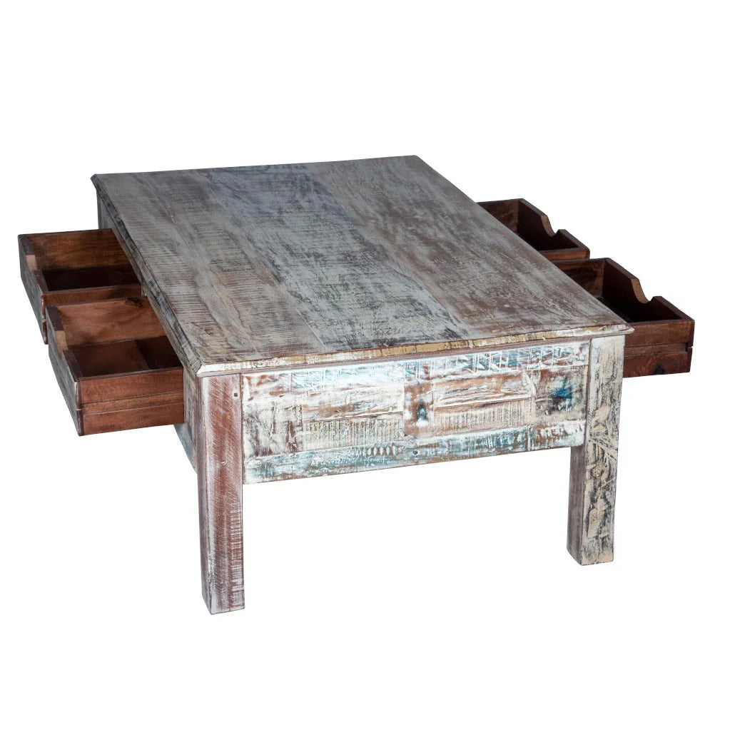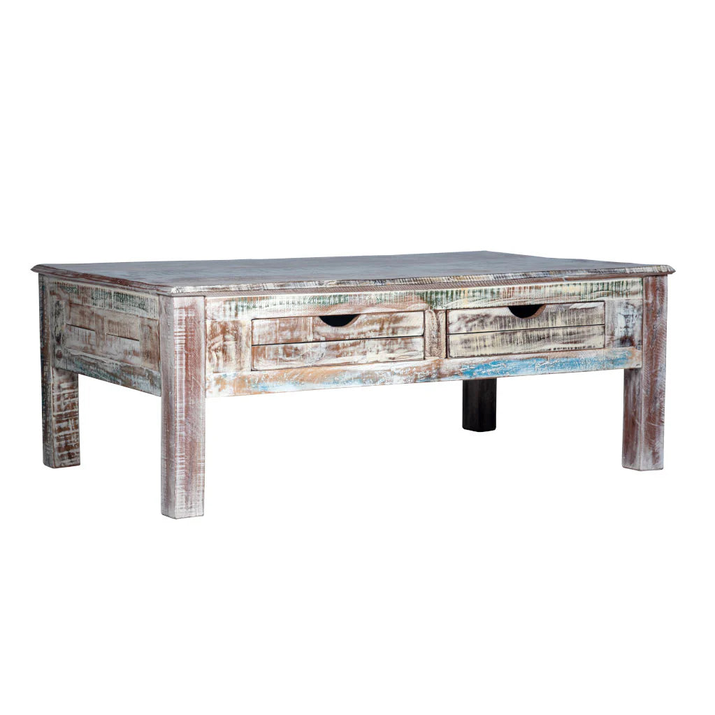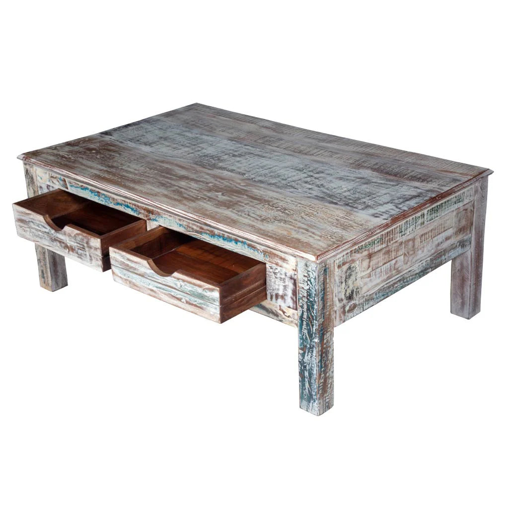 Rustica Reclaimed Solid Wood Coffee Table With Drawers C4