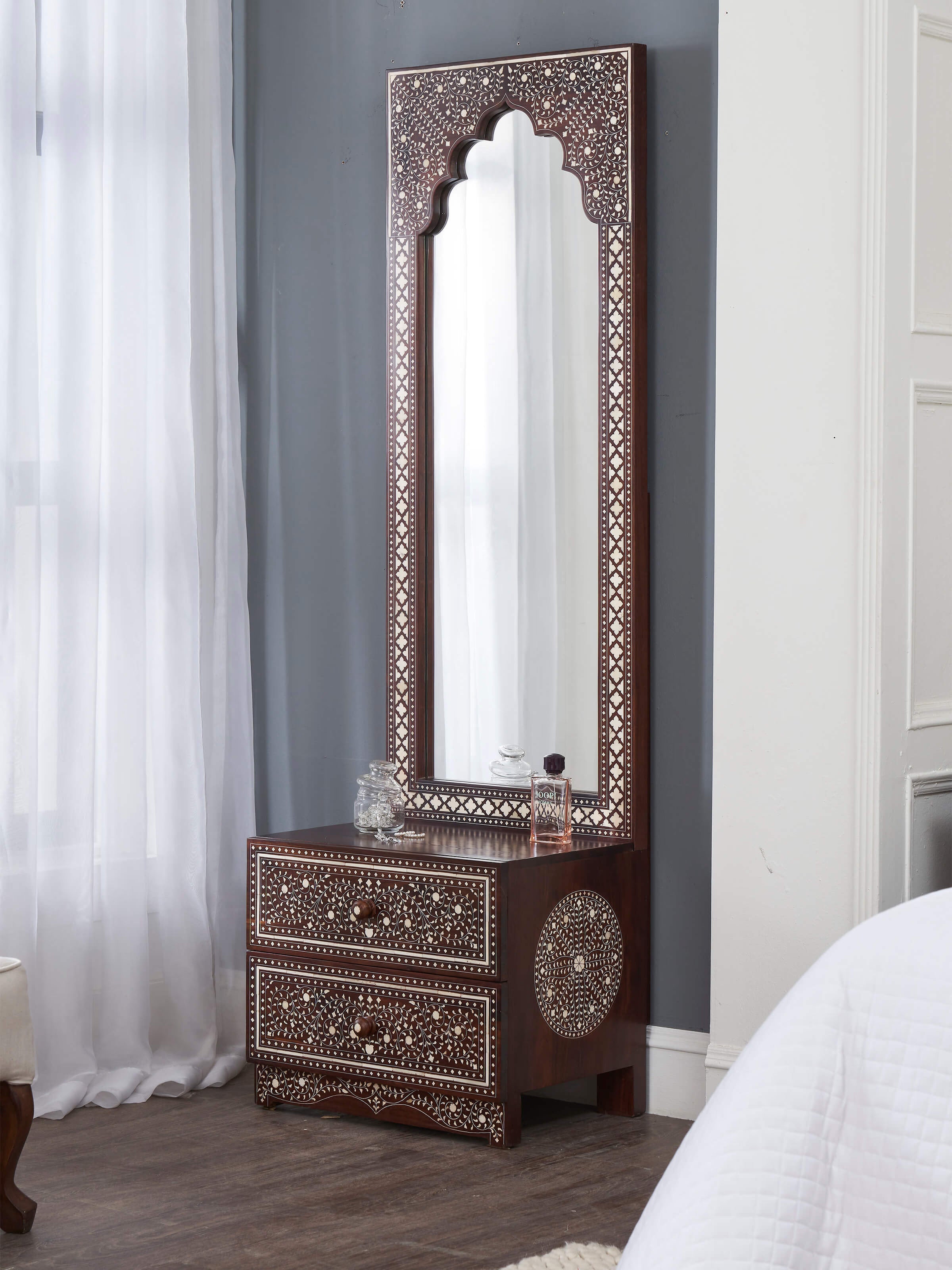 Sheesham Wood & Bone Inlay Dressing Table Mirror 21