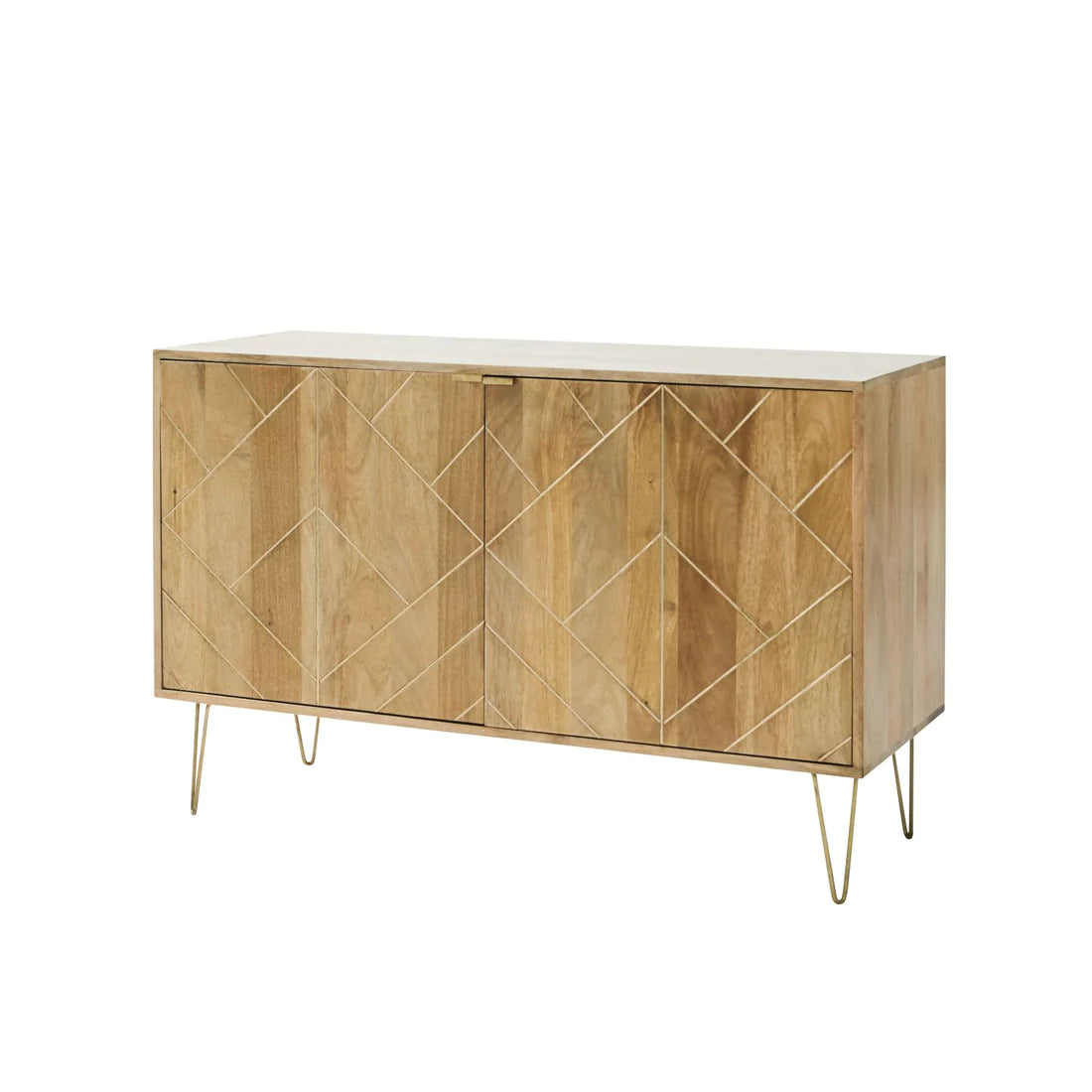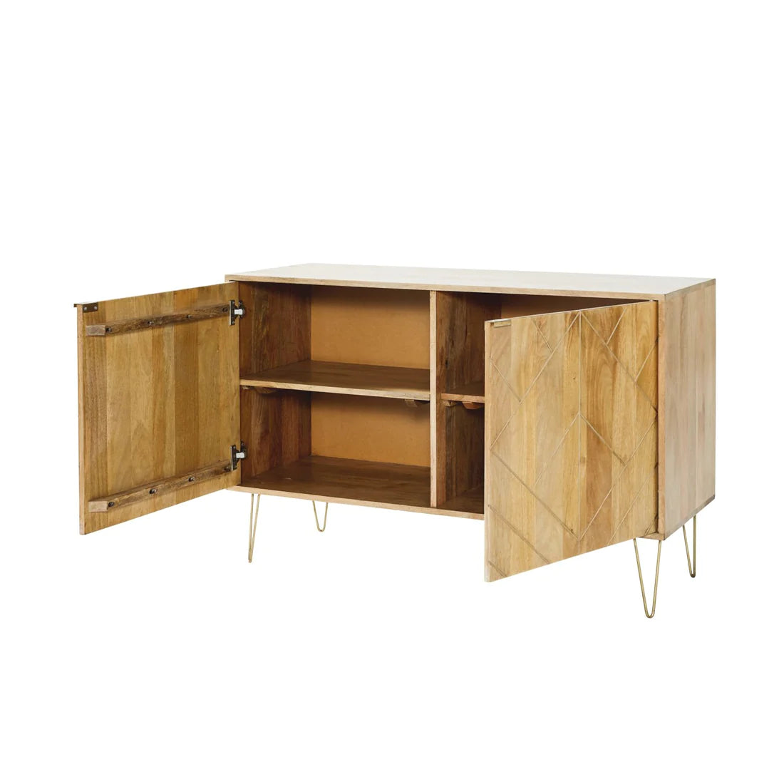 Gfine Sideboard with two doors made of solid mango wood and iron 101x45x88Cm