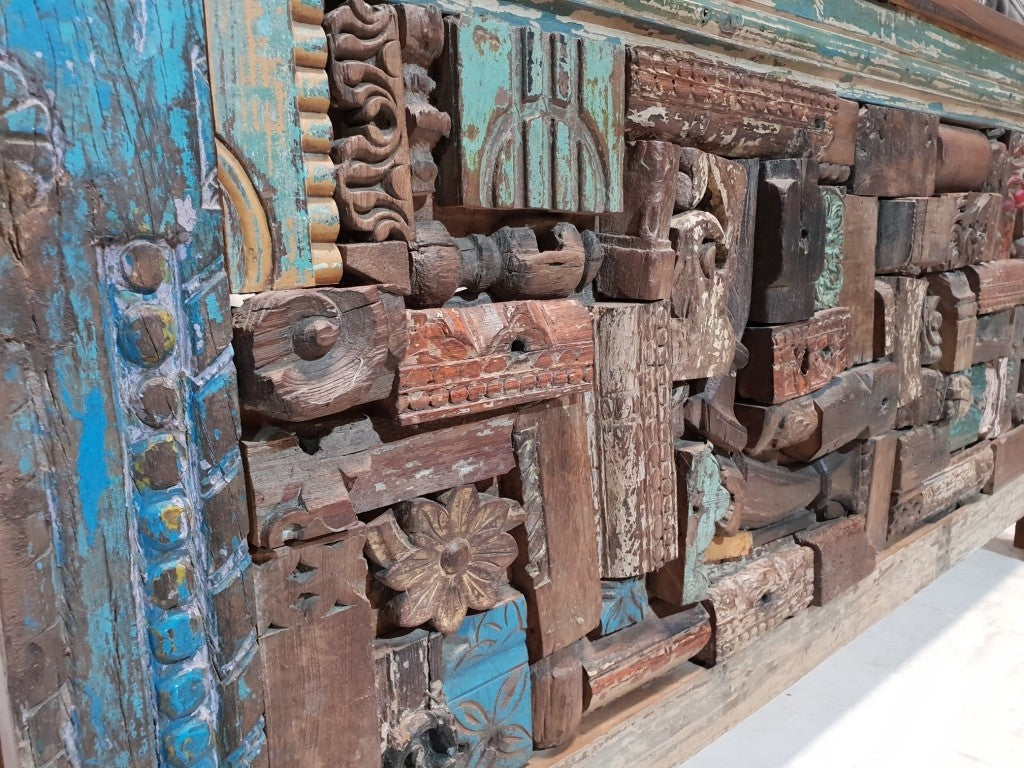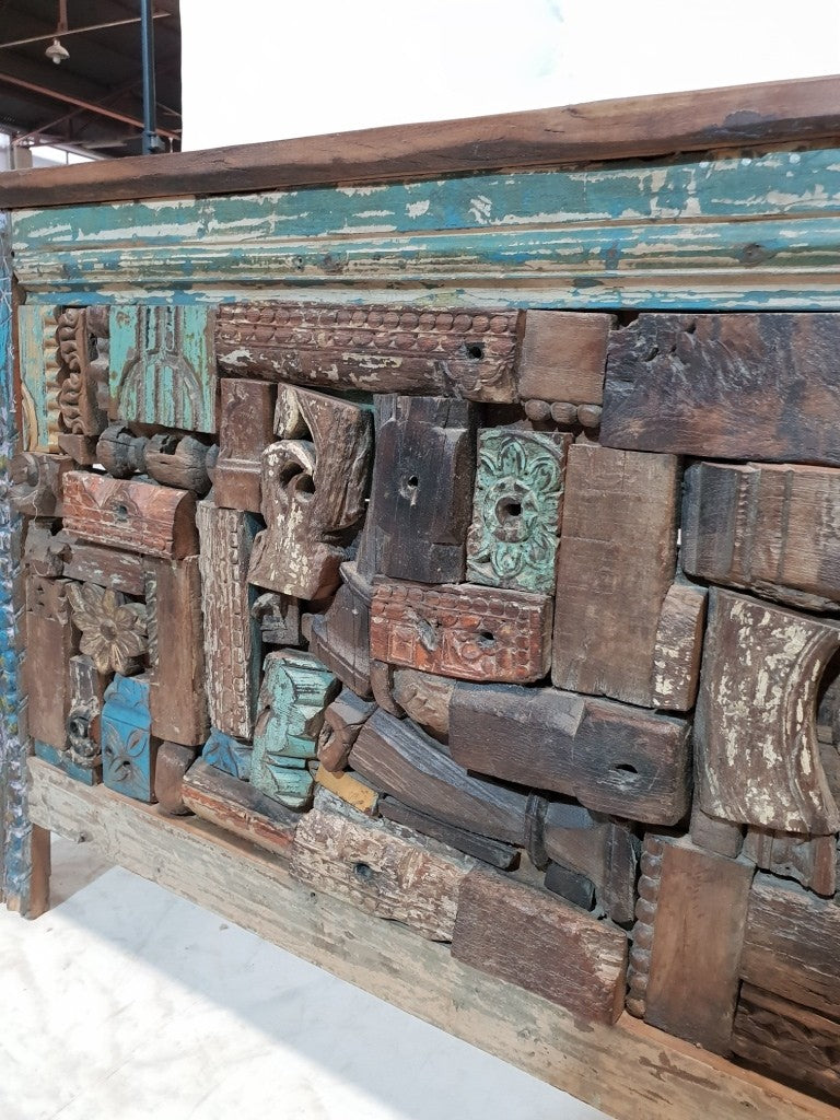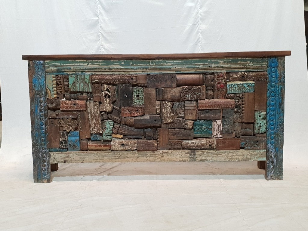 This listing includes : 1 x Reclaimed Wood Carved Panel Console Hall Table