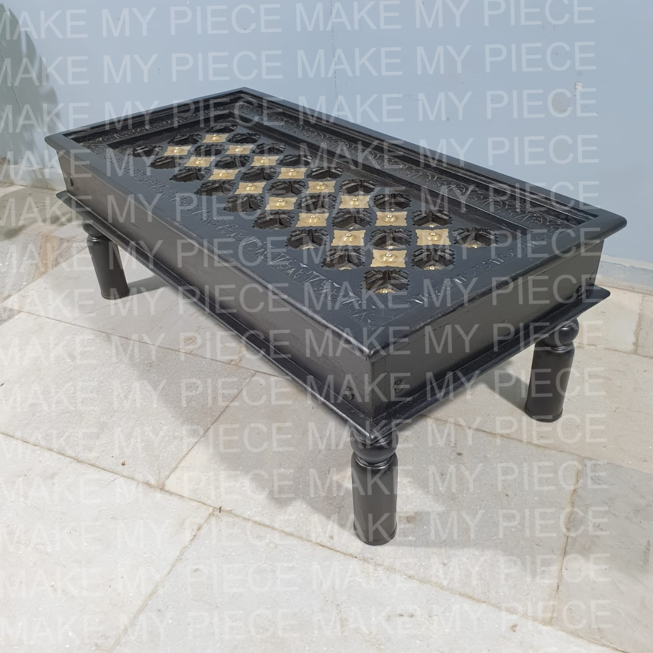 TARIKA Indian Hand Carved Embossed Brass Work Coffee Table