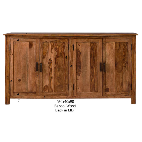Introducing the Attic Balki Sideboard, a versatile and stylish storage solution designed specifically for your living room. Crafted from solid Sheesham wood, this sideboard combines functionality and beauty, making it a must-have piece for your home.