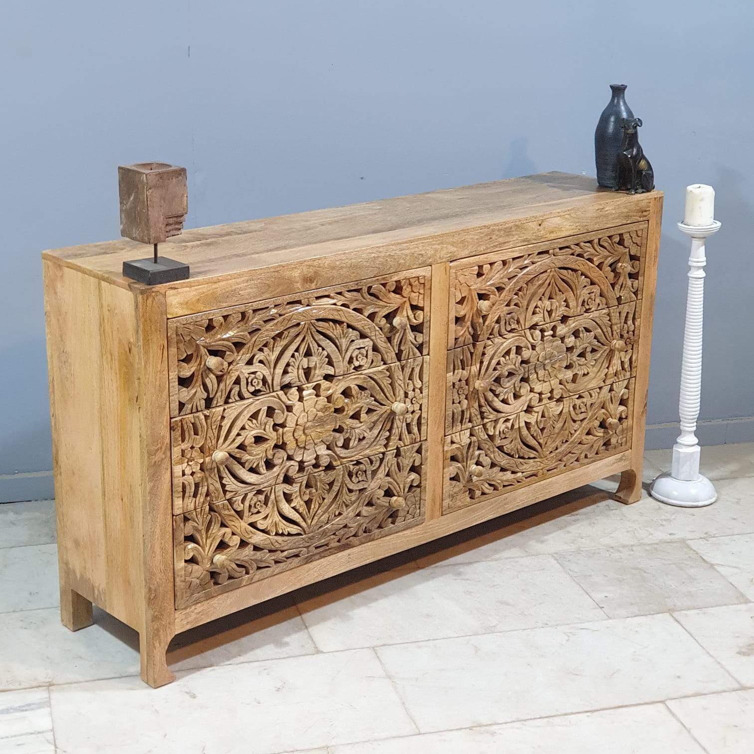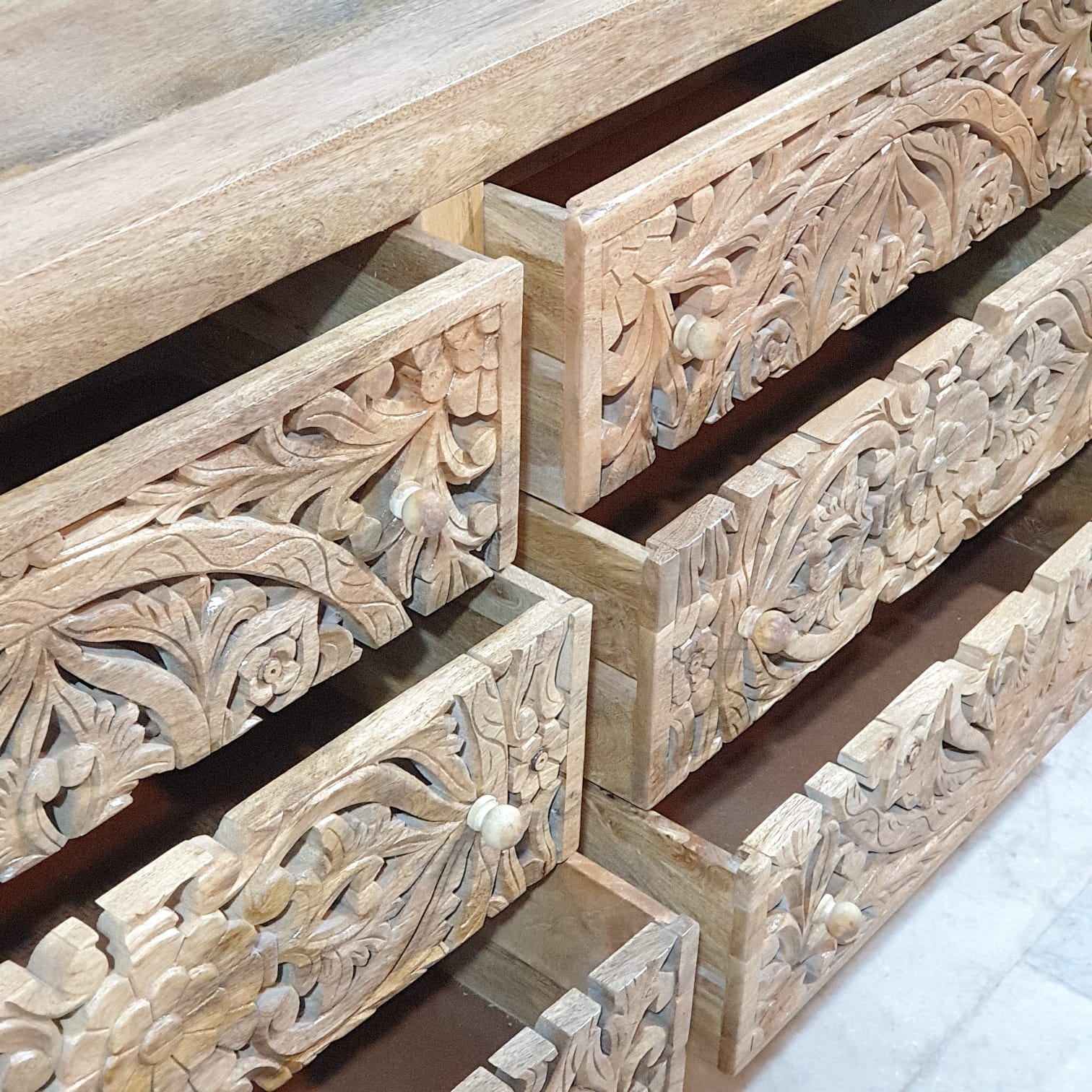 Indian Hand Carved Solid Wood Chest of Drawer Natural D47