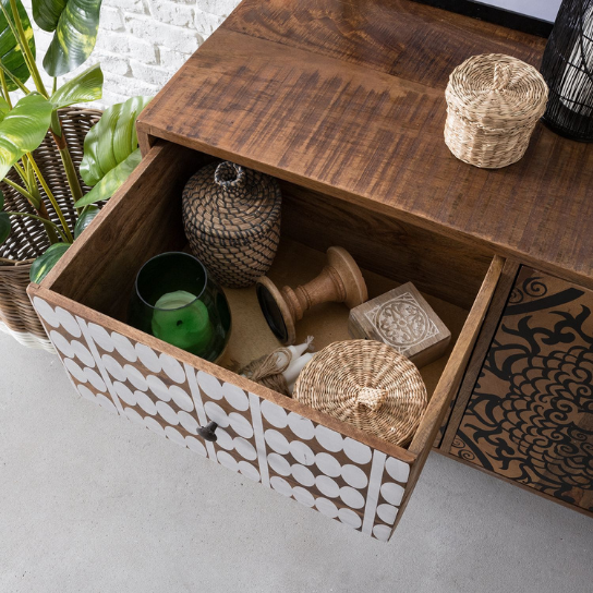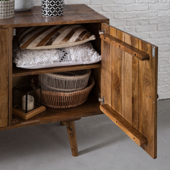 Constructed from solid acacia wood, renowned for its durability and natural grain patterns, the Attic Loopa Sideboard guarantees long-lasting quality. The robust craftsmanship ensures that it withstands the test of time, becoming a reliable piece of furniture in your home. The natural variations in the wood’s texture and color add a touch of rustic charm and character, making each sideboard truly unique.