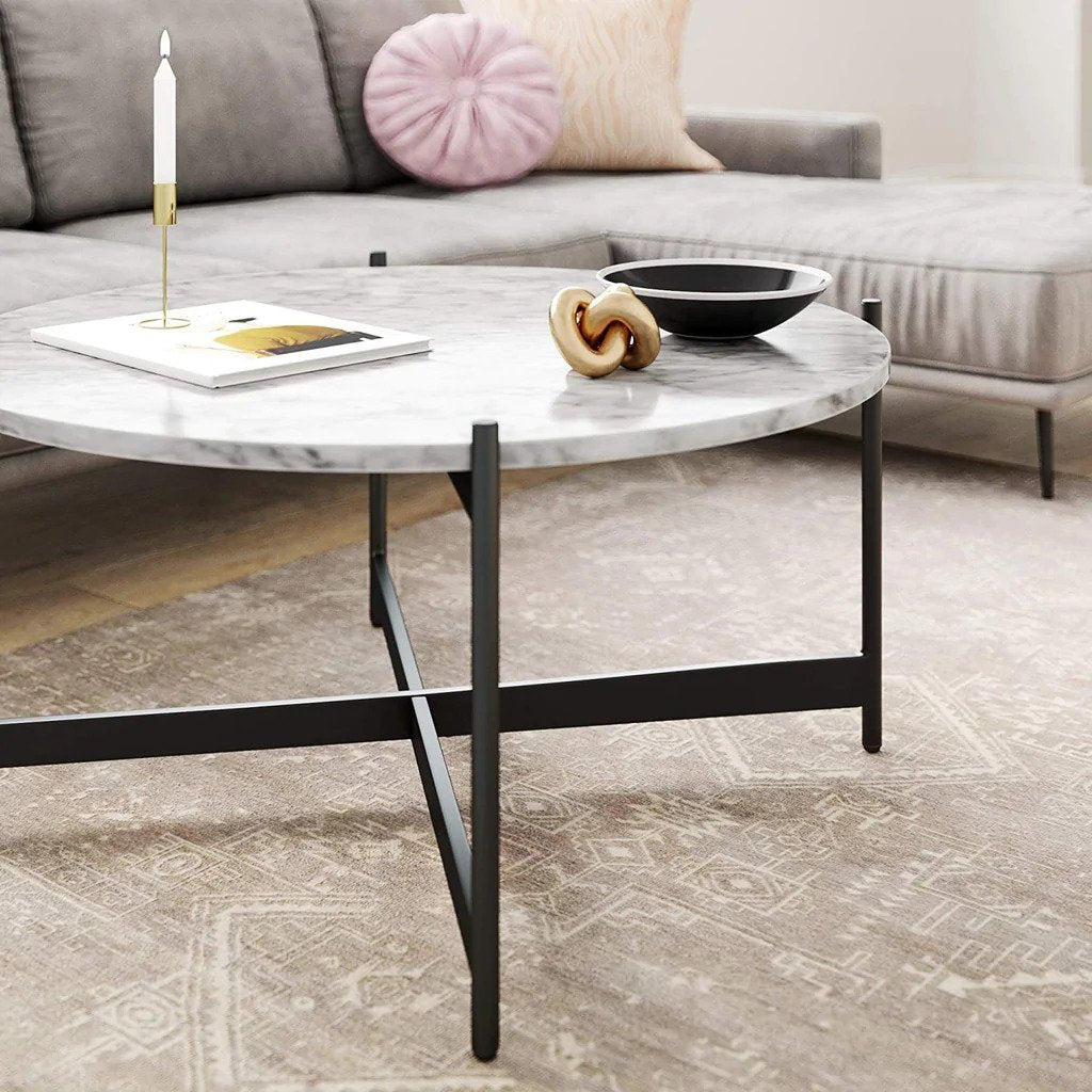 Crafted with meticulous attention to detail, this coffee table features a spacious marble tabletop that provides ample surface area for your drinks, books, and decorative accents. The smooth, polished surface not only exudes elegance but also offers easy cleaning and maintenance.