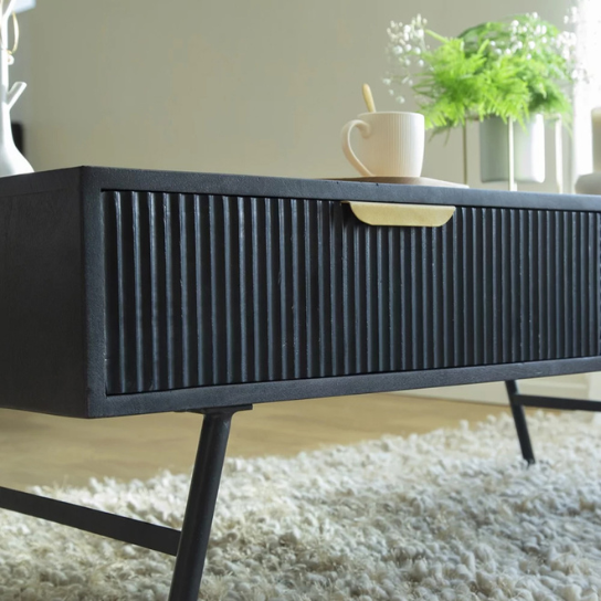Built with durability in mind, this coffee table is crafted from solid Sheesham wood – a material known for its strength and resistance to wear and tear. Its walnut matte finish adds an extra layer of protection against scratches and scuffs, ensuring that it will maintain its beauty and quality for years to come.
