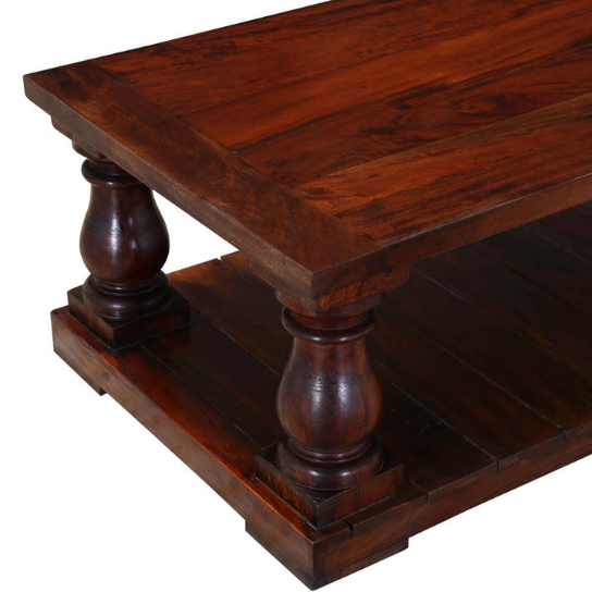 Built with durability in mind, this coffee table is crafted from solid Sheesham wood – a material known for its strength and resistance to wear and tear. Its walnut matte finish adds an extra layer of protection against scratches and scuffs, ensuring that it will maintain its beauty and quality for years to come.