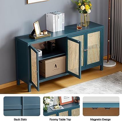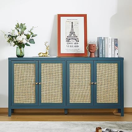 The Gileteen Buffet Cabinet, Kitchen Accent Storage Cabinet with Adjustable Shelves & Rattan Decorated Doors