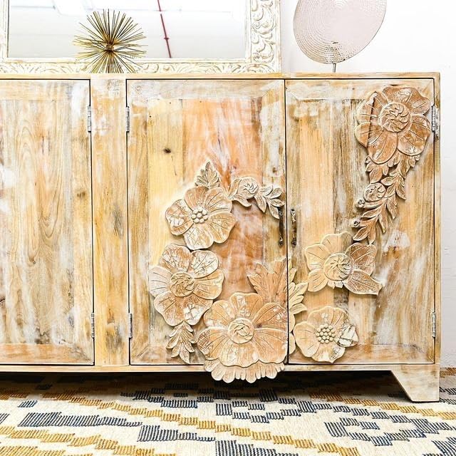 The Gileteen Wood Floral Intricately Carved Sideboard 3-D Floral Design & a Very raw Distressed Finish
