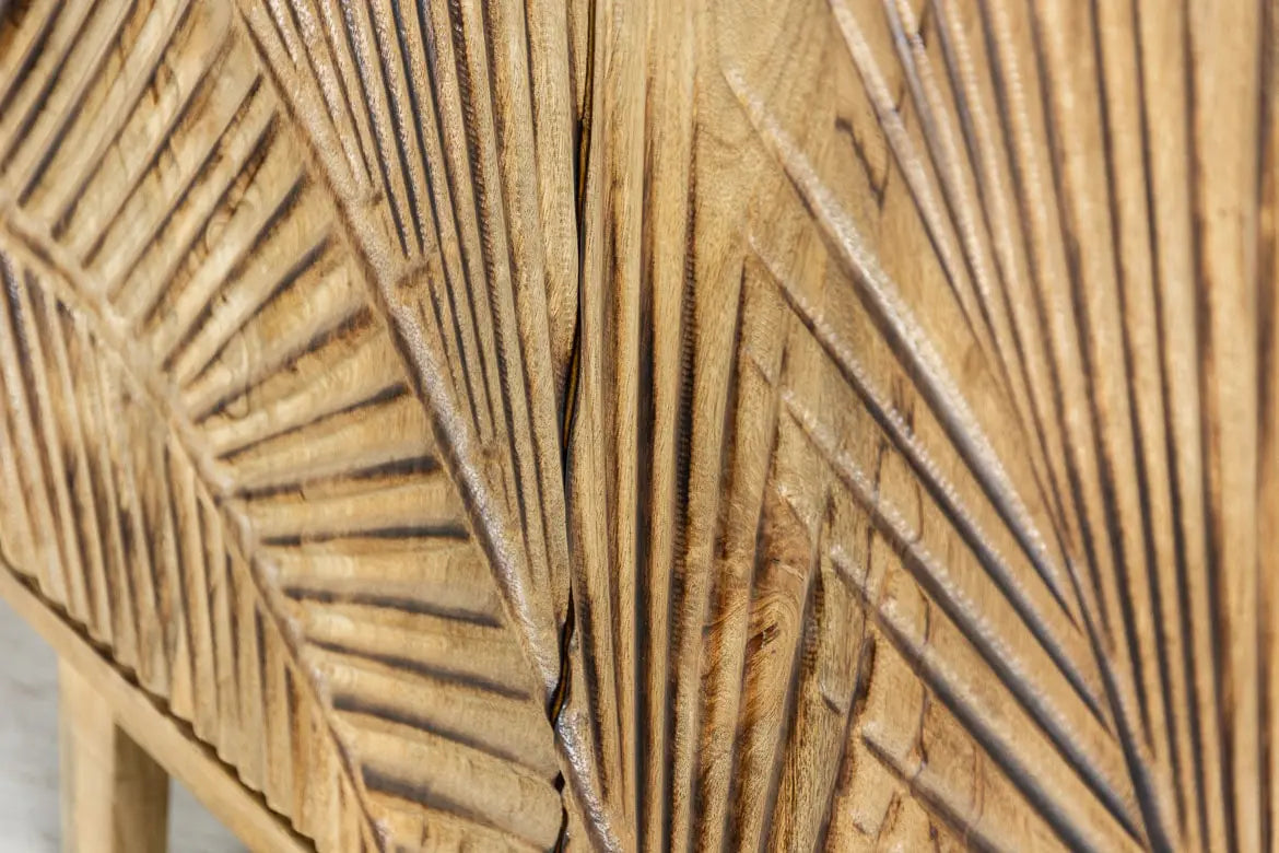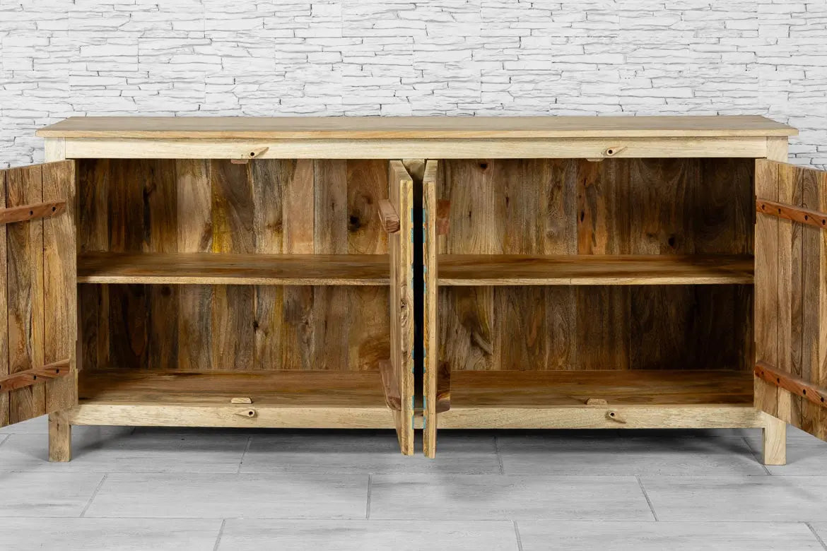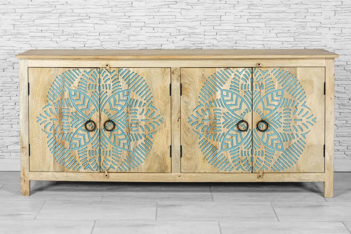 Urban Loft Handmade Solid Mango Wood Carved 4 Doors Sideboard