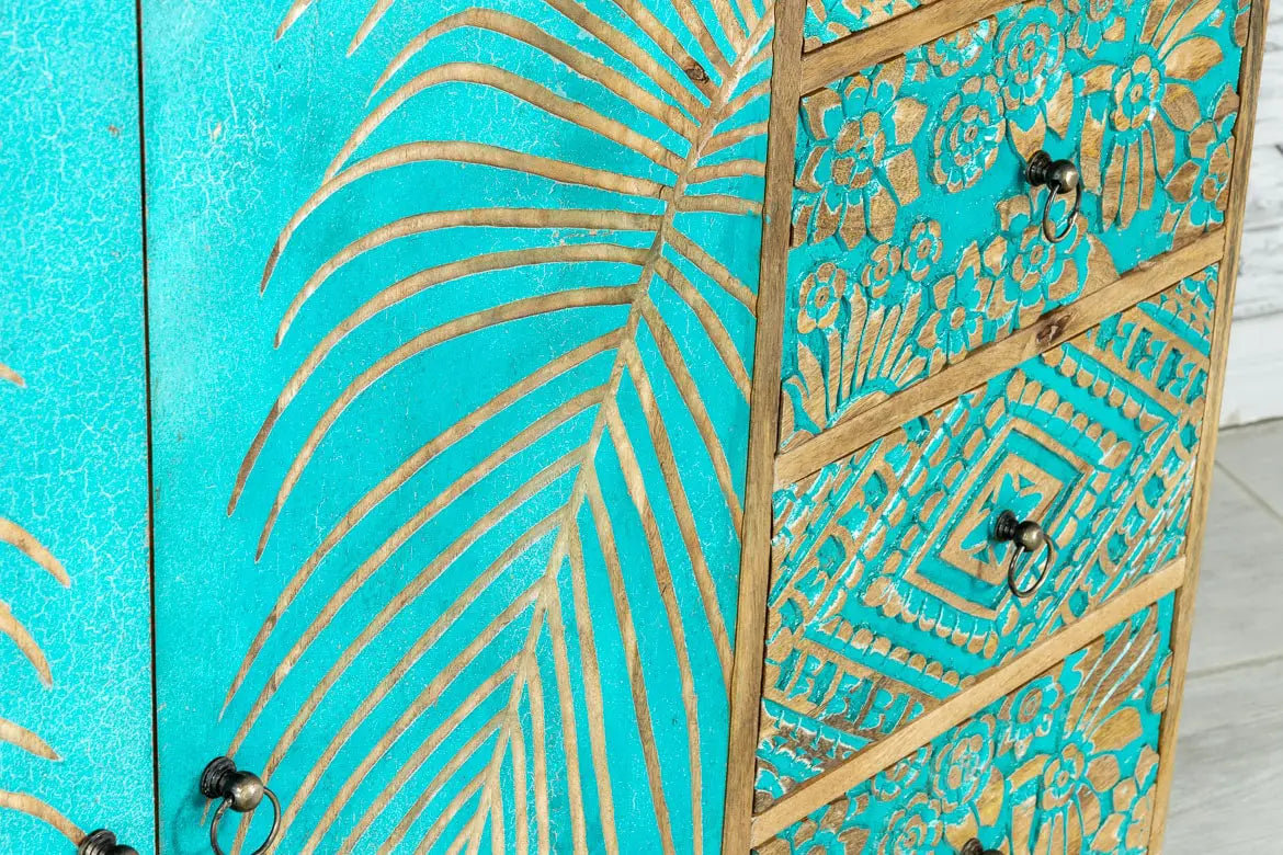 Urban Loft Handmade Solid Mango Wood Carved 4 Drawers 2 Door Sideboard