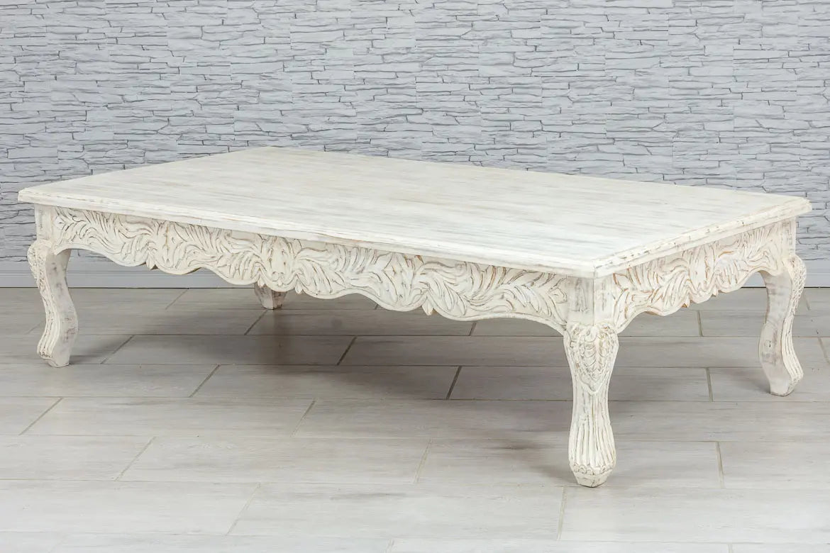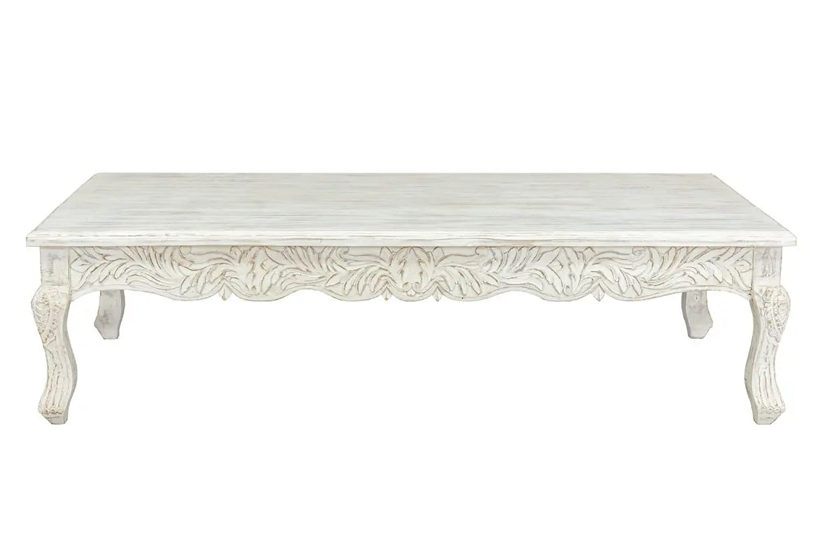 Urban Loft Handmade Solid Mango Wood Carved French Legged Coffee Table in White