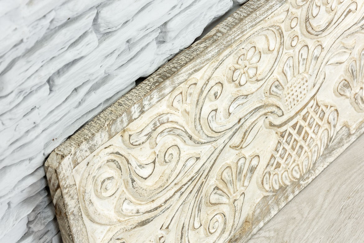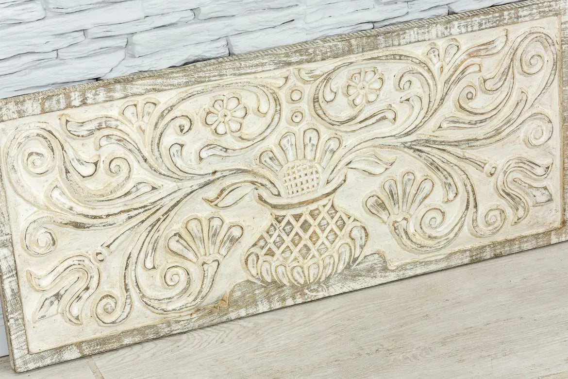 Urban Loft Handmade Solid Mango Wood Carved Wall Decor Panel Distressed White