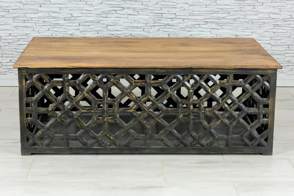 Urban Loft Handmade Solid Mango Wood Jali Carving Coffee Table With Natural Top